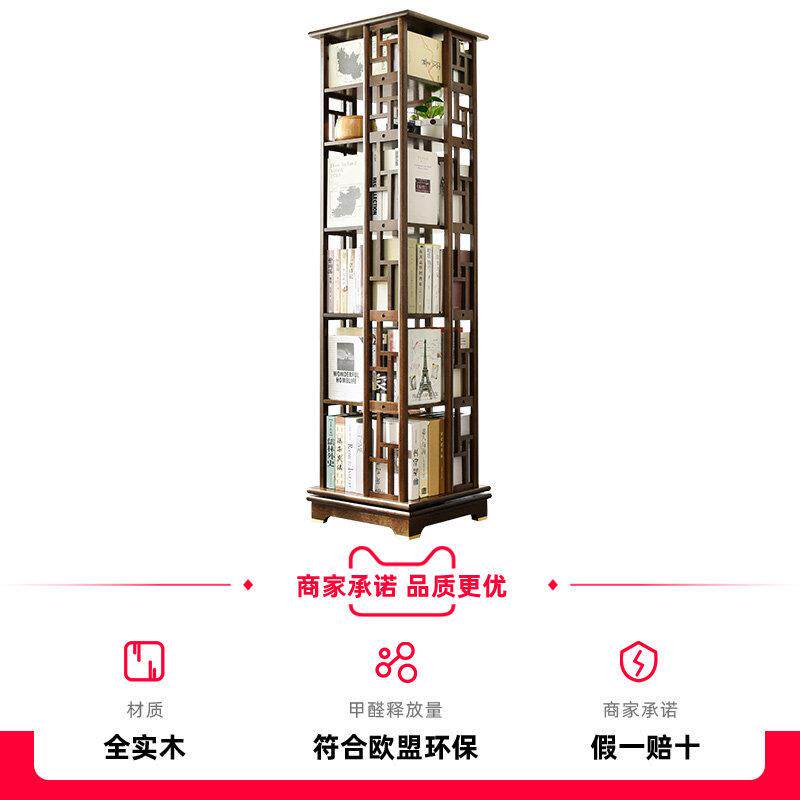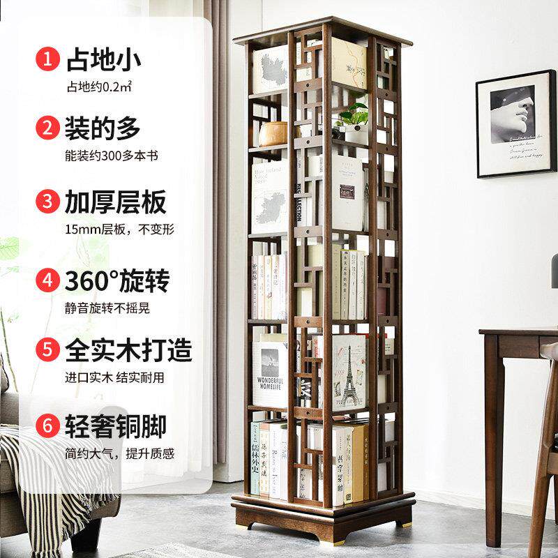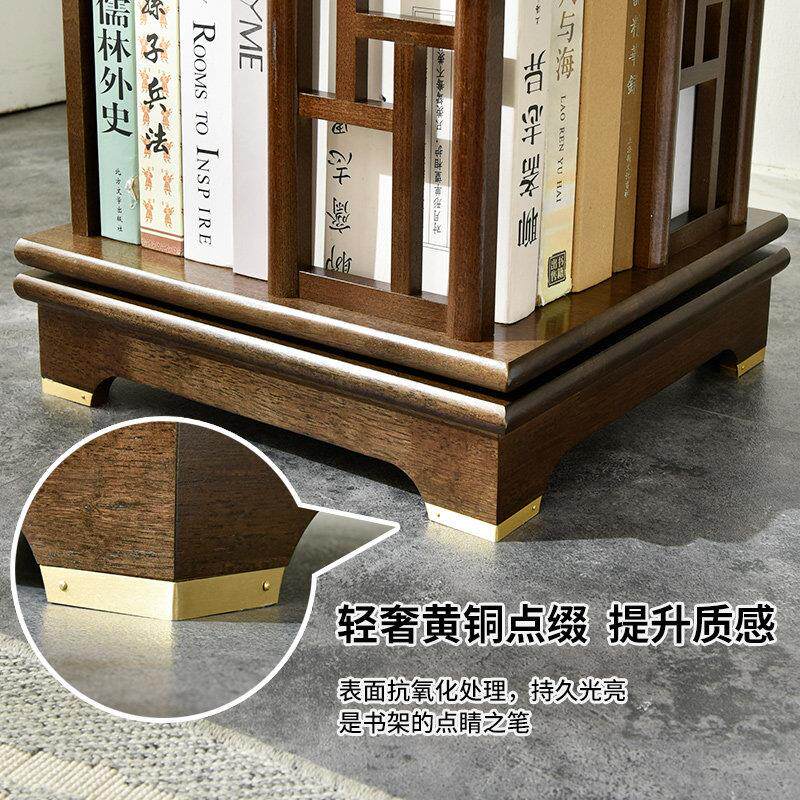 中式实木旋转书架360度移动书柜客厅落地置物架学生轻奢收纳书橱