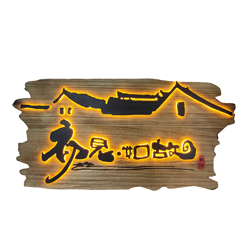 实木木雕招牌发光新中式门头设计广告牌手工刻字仿古牌匾定制装饰
