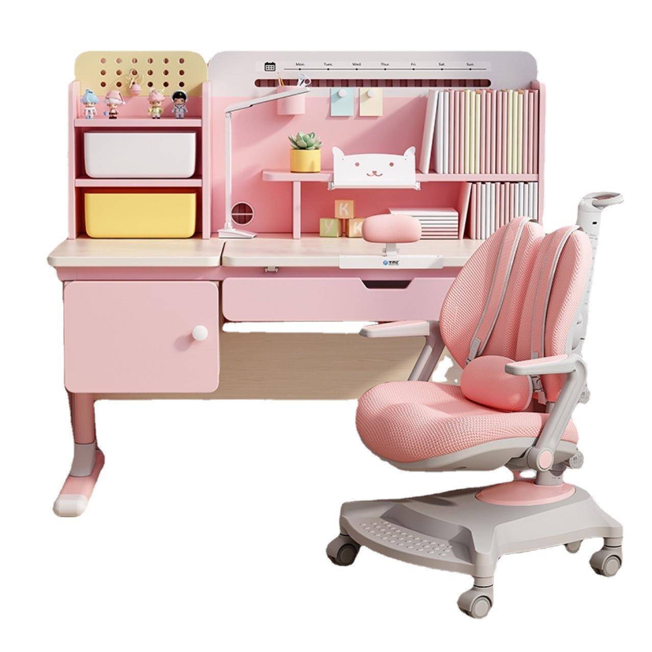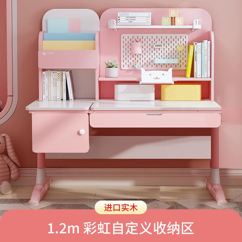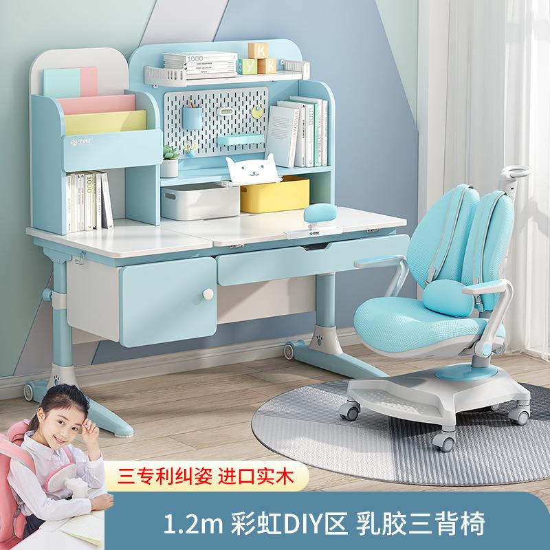 坐得正实木儿童桌椅套装中小学生学习写字桌家用带书架可升降书桌