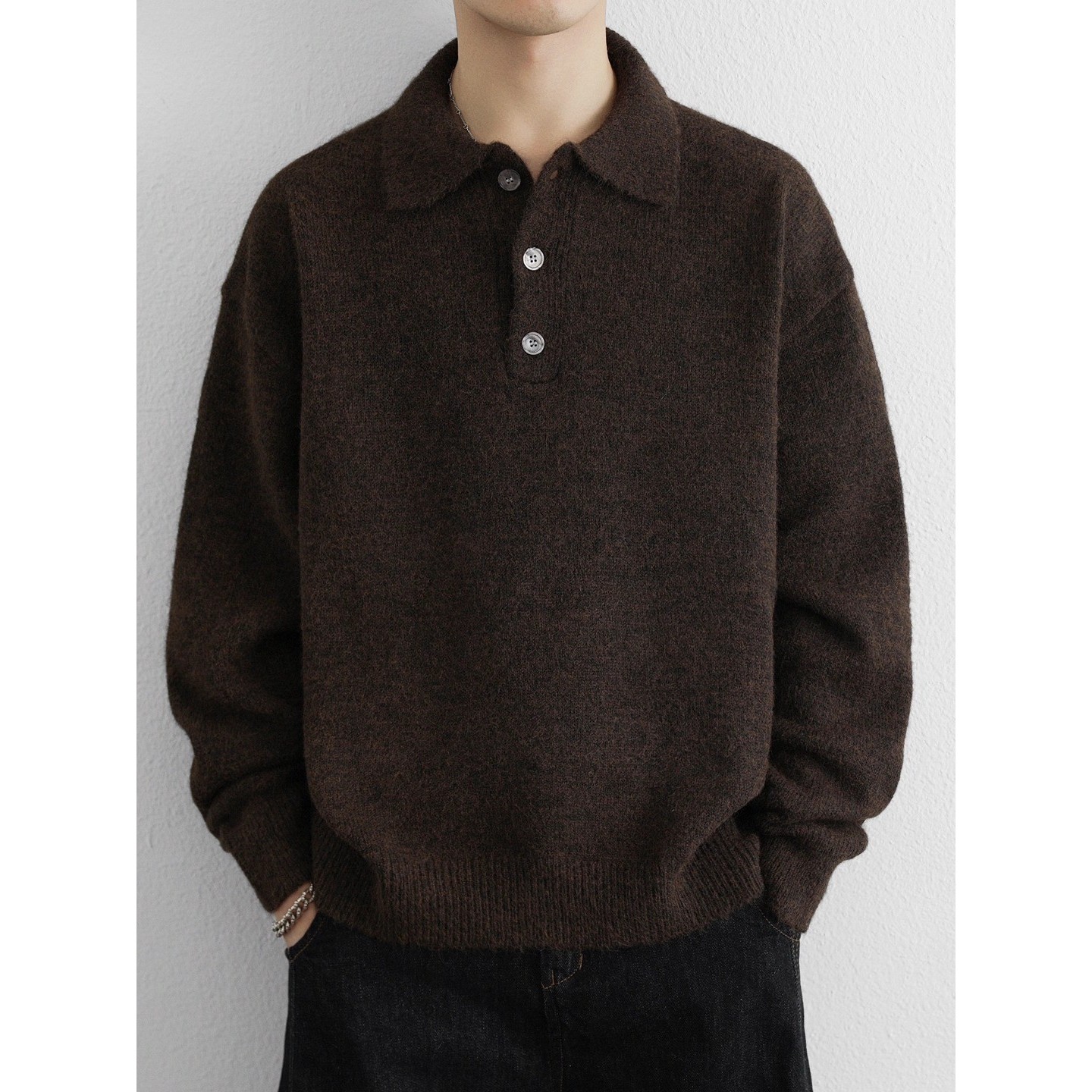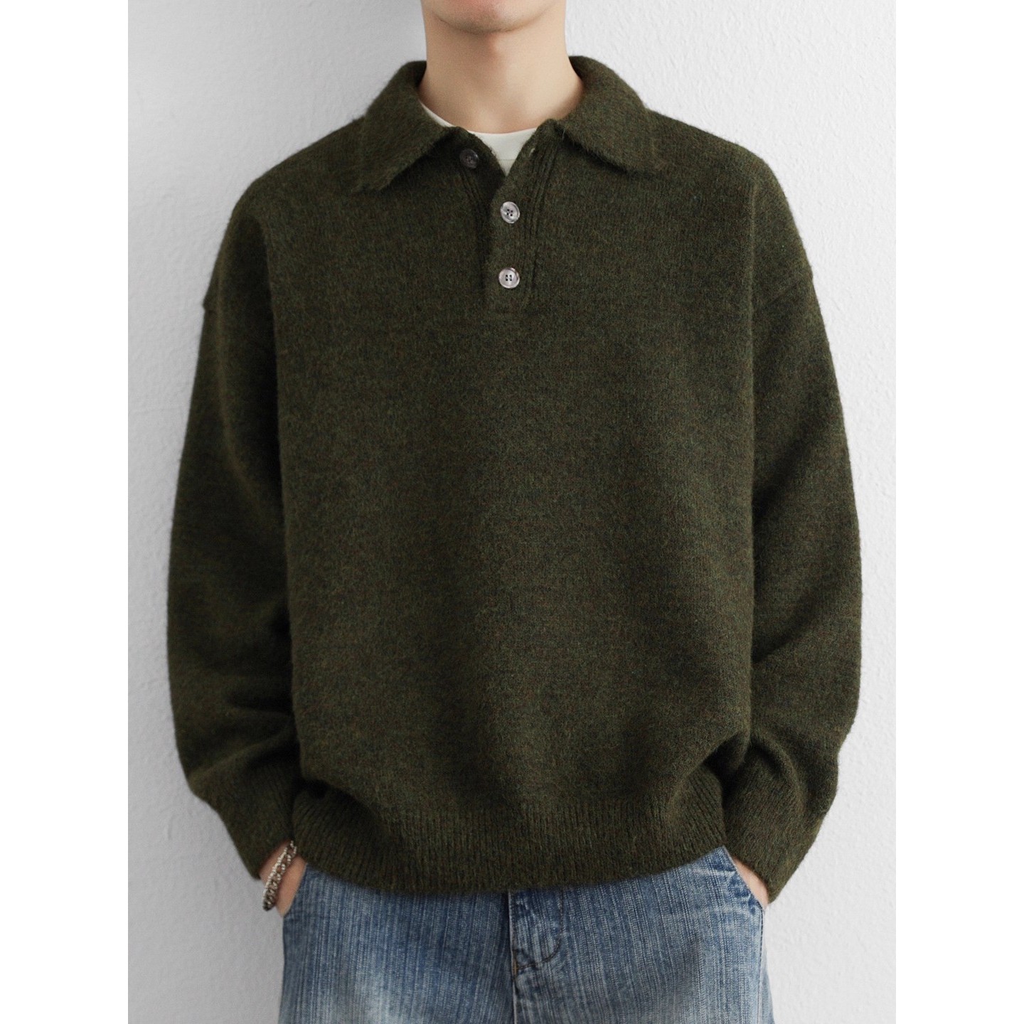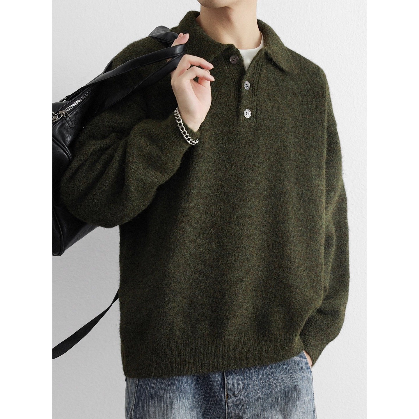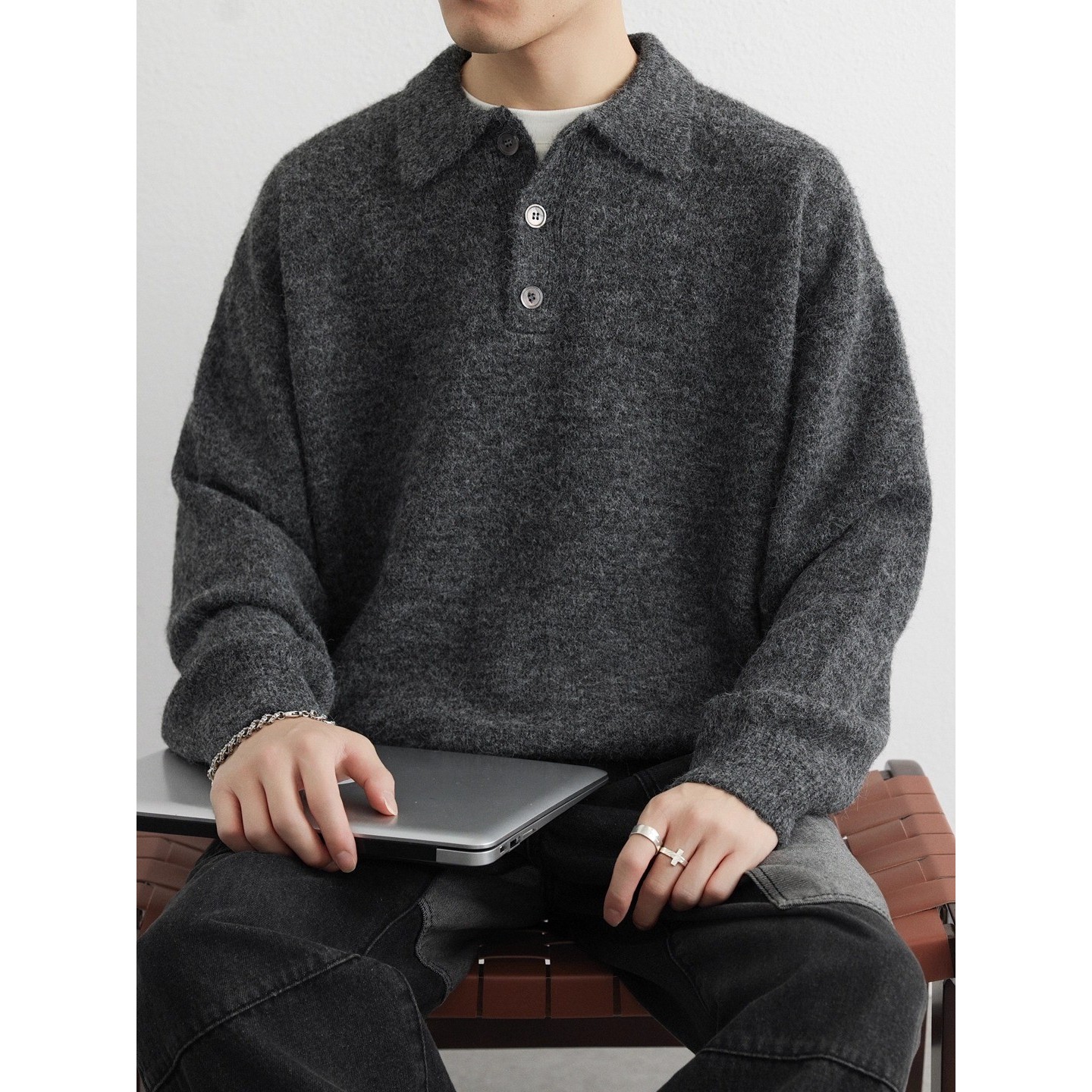 软糯加厚毛衣男士秋冬款polo领内搭慵懒风上衣翻领冬装羊毛针织衫