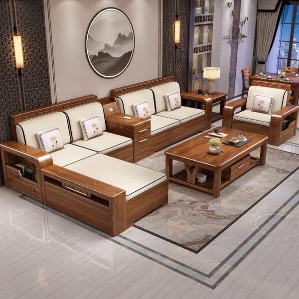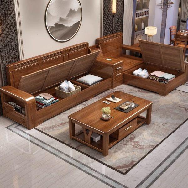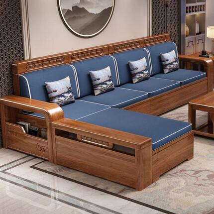 储物实木沙发大夏客厅胡桃木沙发高端小户型两用新中式组合冬简约