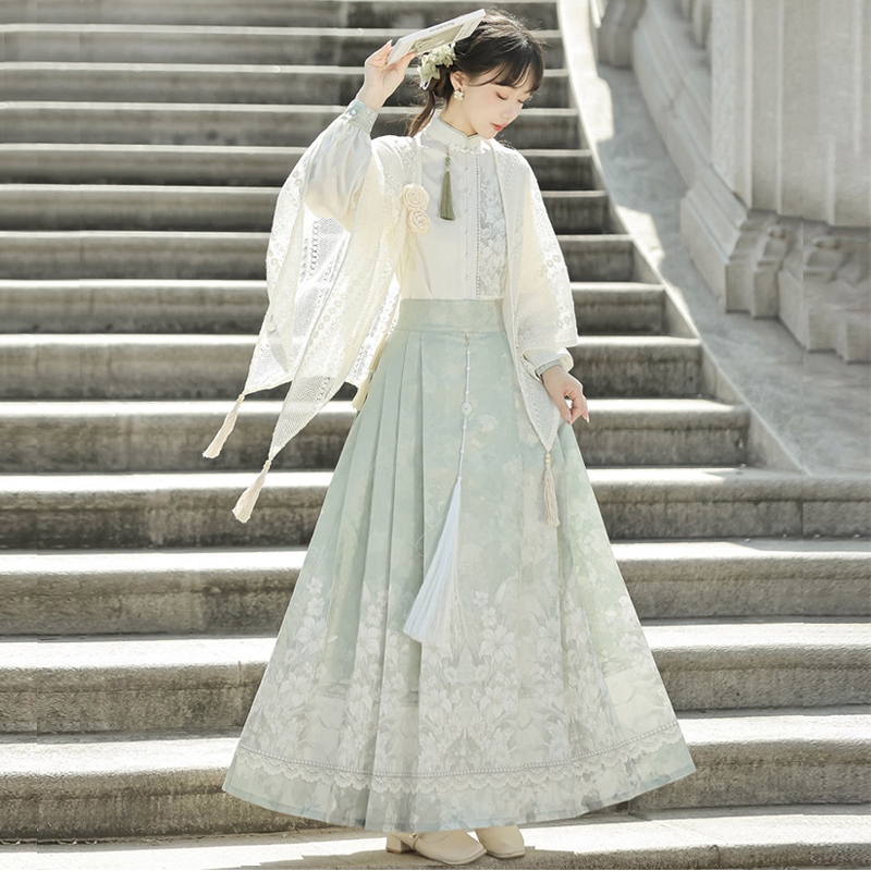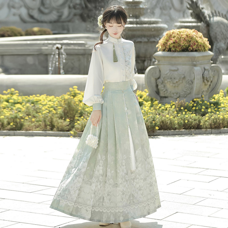 中长款大衣女春秋马面裙国风披肩外套显瘦新中式松紧腰半身裙套装