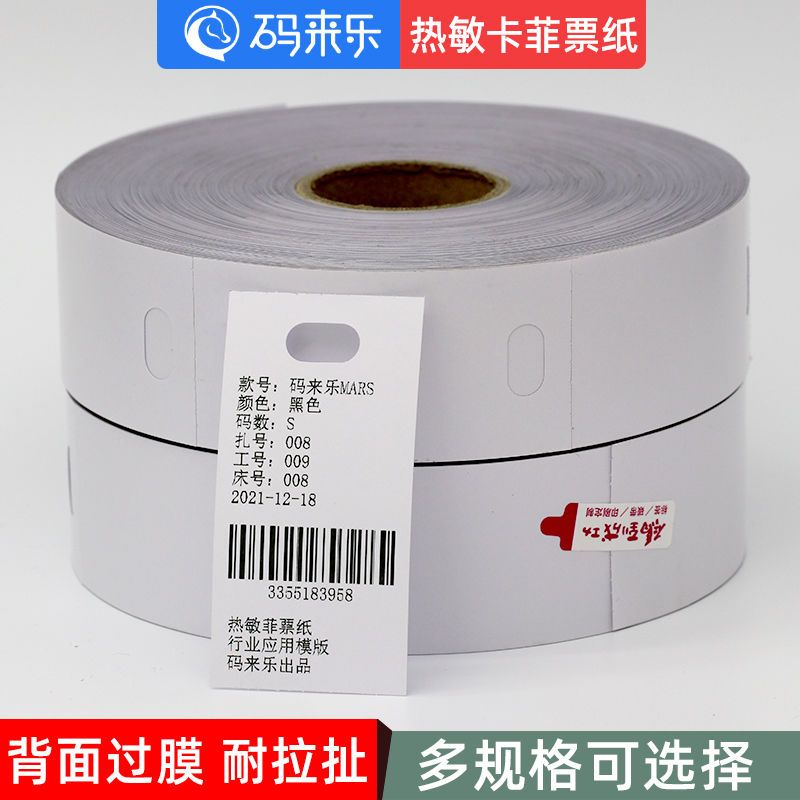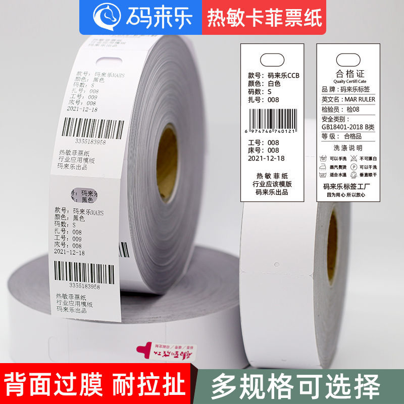 空白热敏裁床标水洗唛防水卷装合格证打印卡纸30 40 50 80mm打菲纸工价单服装吊牌手撕菲票纸分标号标扎袋单