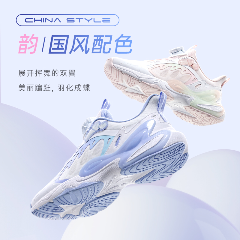 安踏儿童蝶翼女大童休闲鞋2025秋季新款透气跑鞋网面运动鞋童鞋