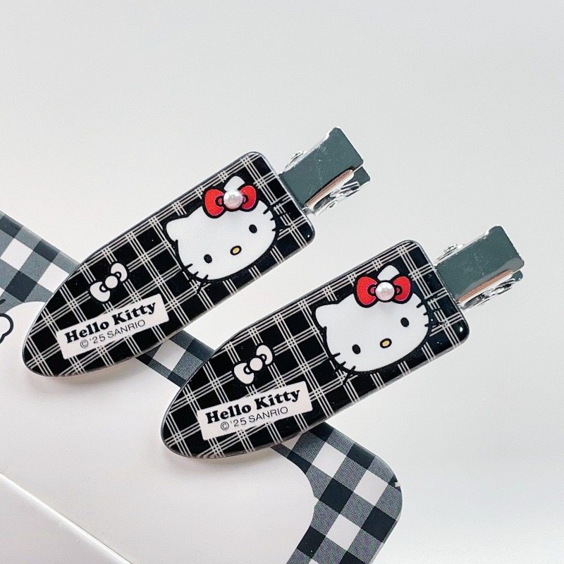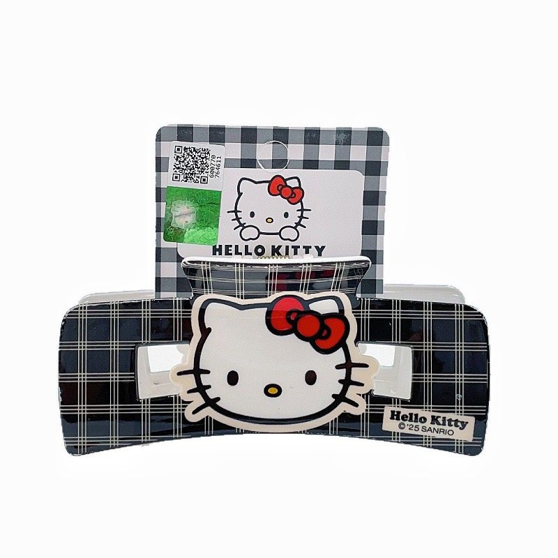 正版Hellokitty大号抓夹凯蒂猫甜酷黑色格纹无痕刘海夹发抓12596
