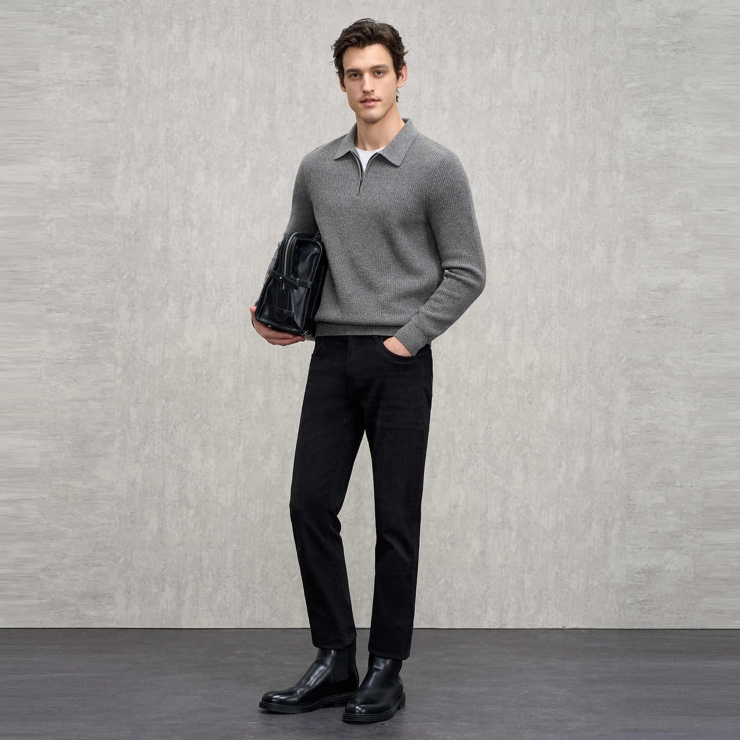 EMZ鄂尔多斯【羊毛羊绒】polo领羊毛衫男2025秋冬新款针织衫毛衣