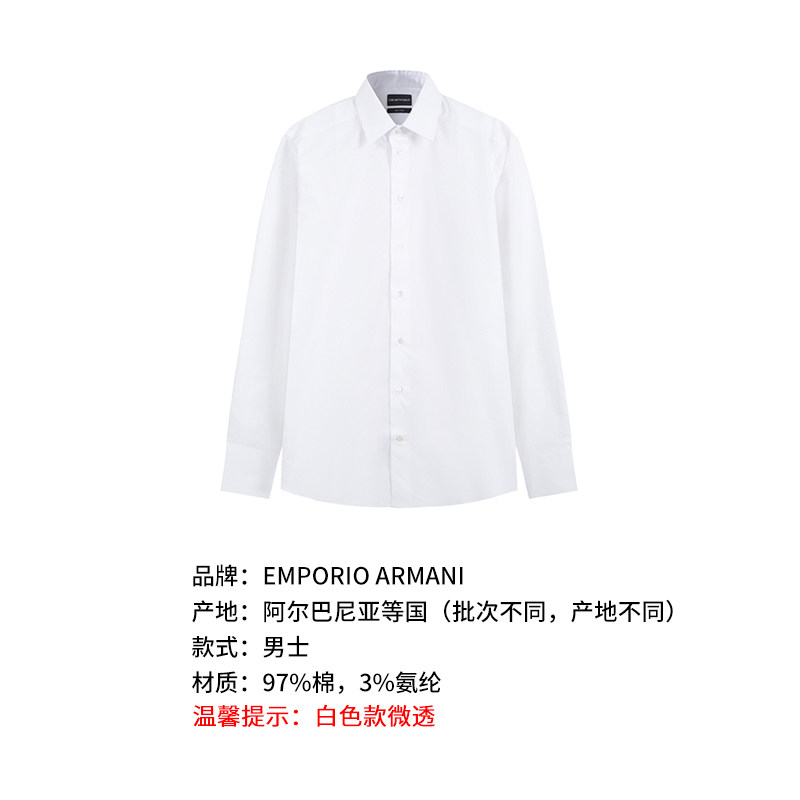 Emporio Armani EA阿玛尼男士棉质正装商务长袖衬衫 01CN50 01C68