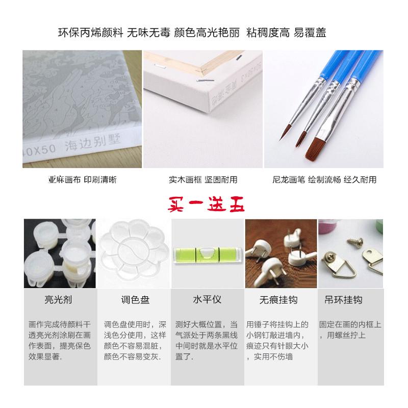 diy数字油画风景人物花卉田园手绘填色定制大幅客厅 装饰画包邮