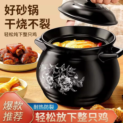 砂锅炖锅家用燃气耐高温干烧不裂陶瓷锅煲汤锅煤气灶专用沙锅汤煲