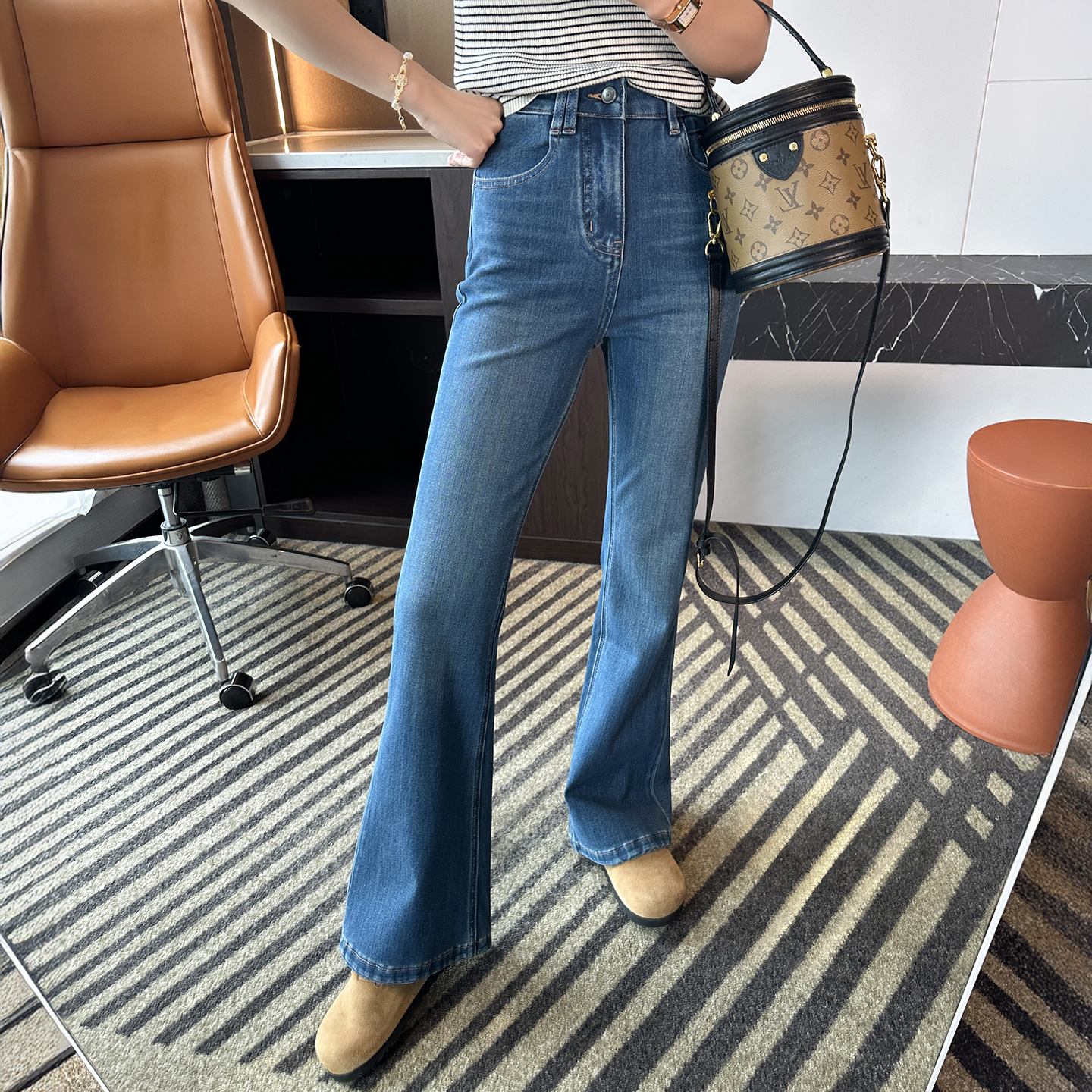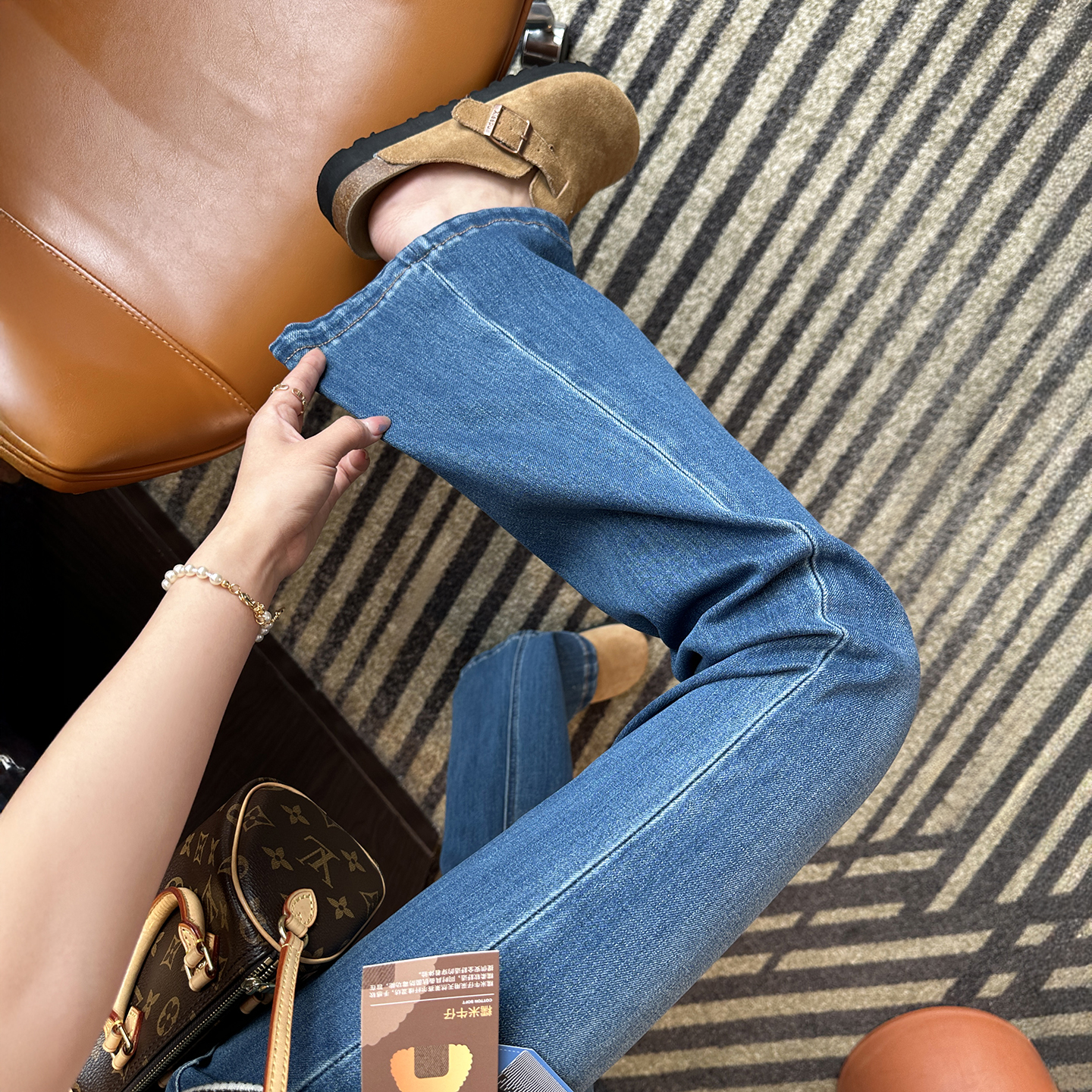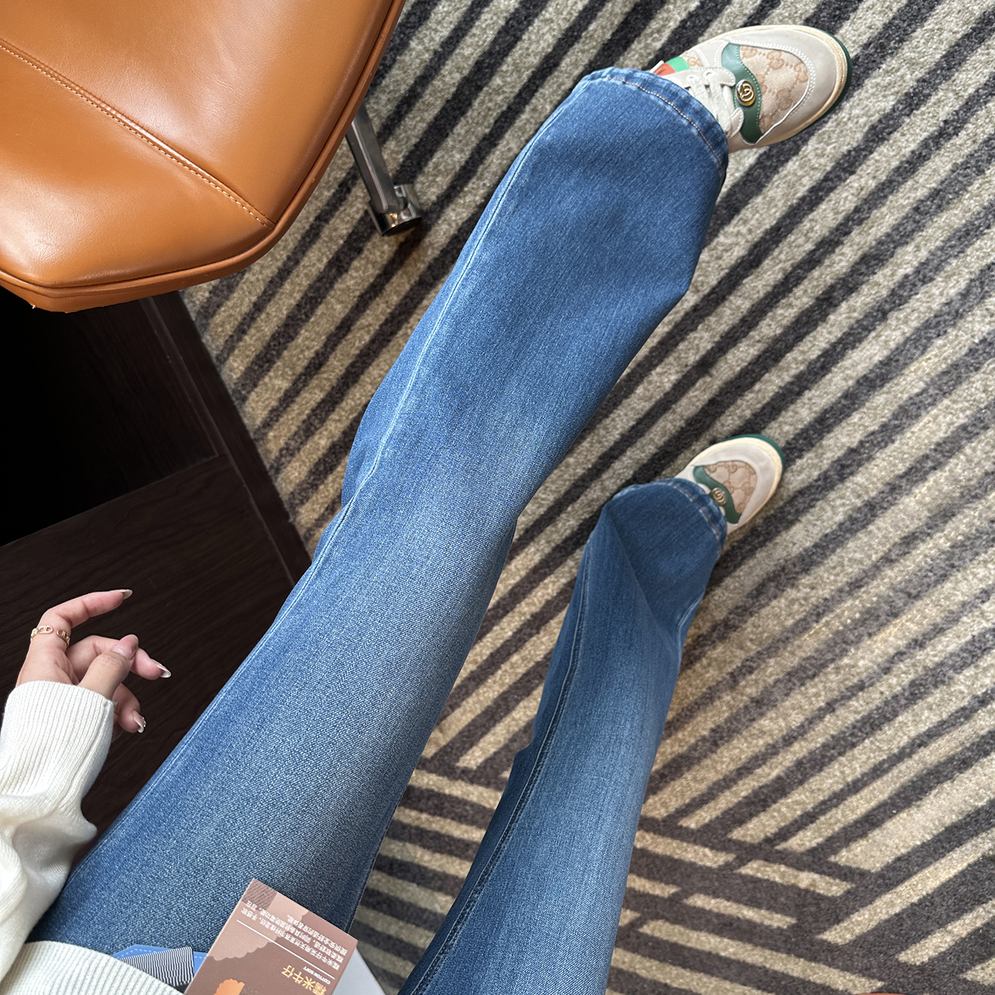 腿精秘籍~!高腰微喇叭牛仔裤女2025新款百搭修身弹力显瘦马蹄裤