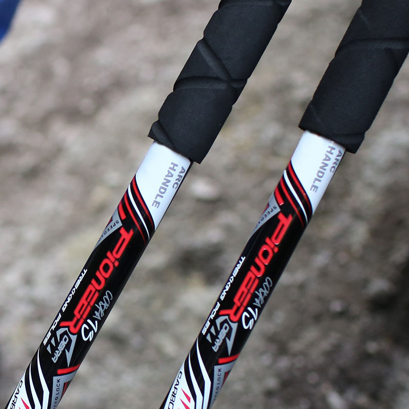 开拓者户外99%碳素登山杖 三节杖手杖拐杖外锁可伸缩折叠爬山拐棍