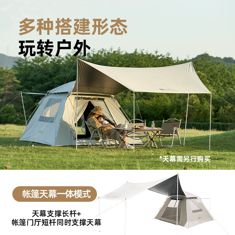 牧高笛帐篷天幕黑胶防晒户外自动野餐公园露营三合一速开零动155