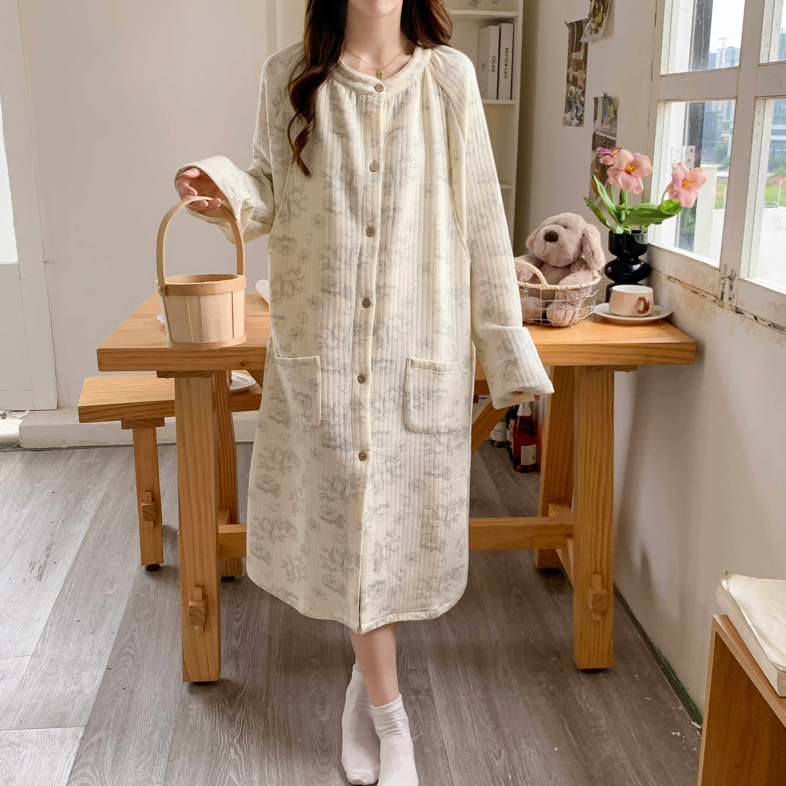 空气棉待产裙孕妇秋冬产后哺乳睡裙月子服冬季产妇待产睡衣女长款