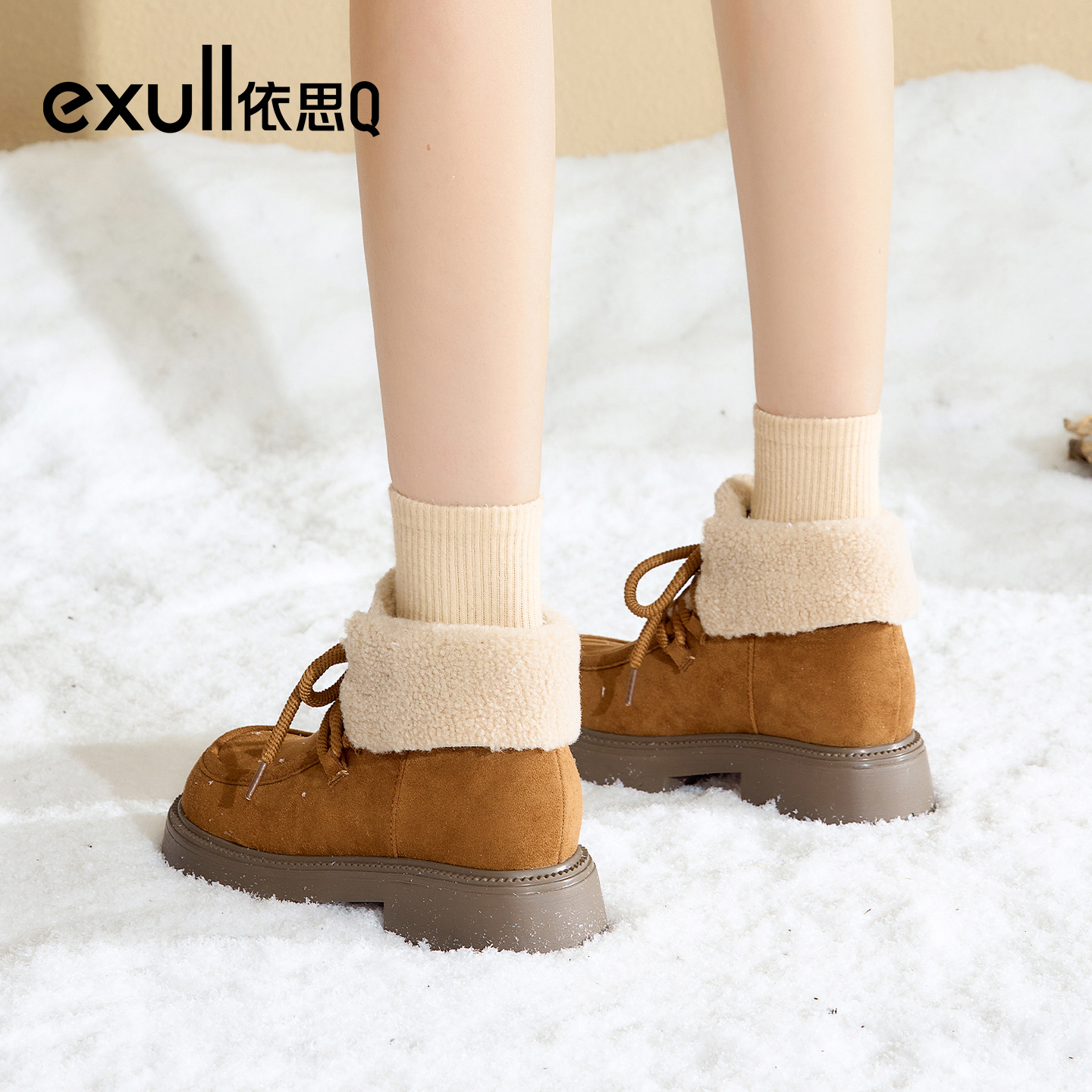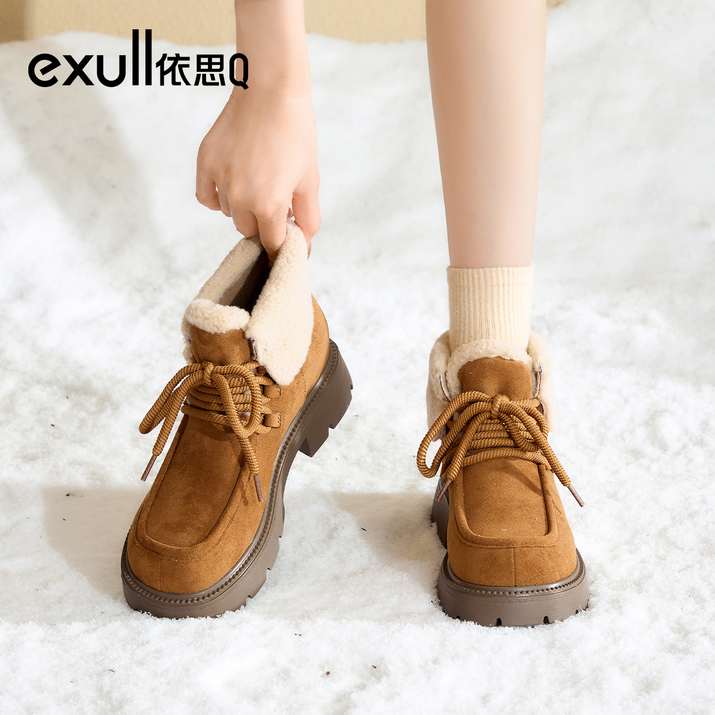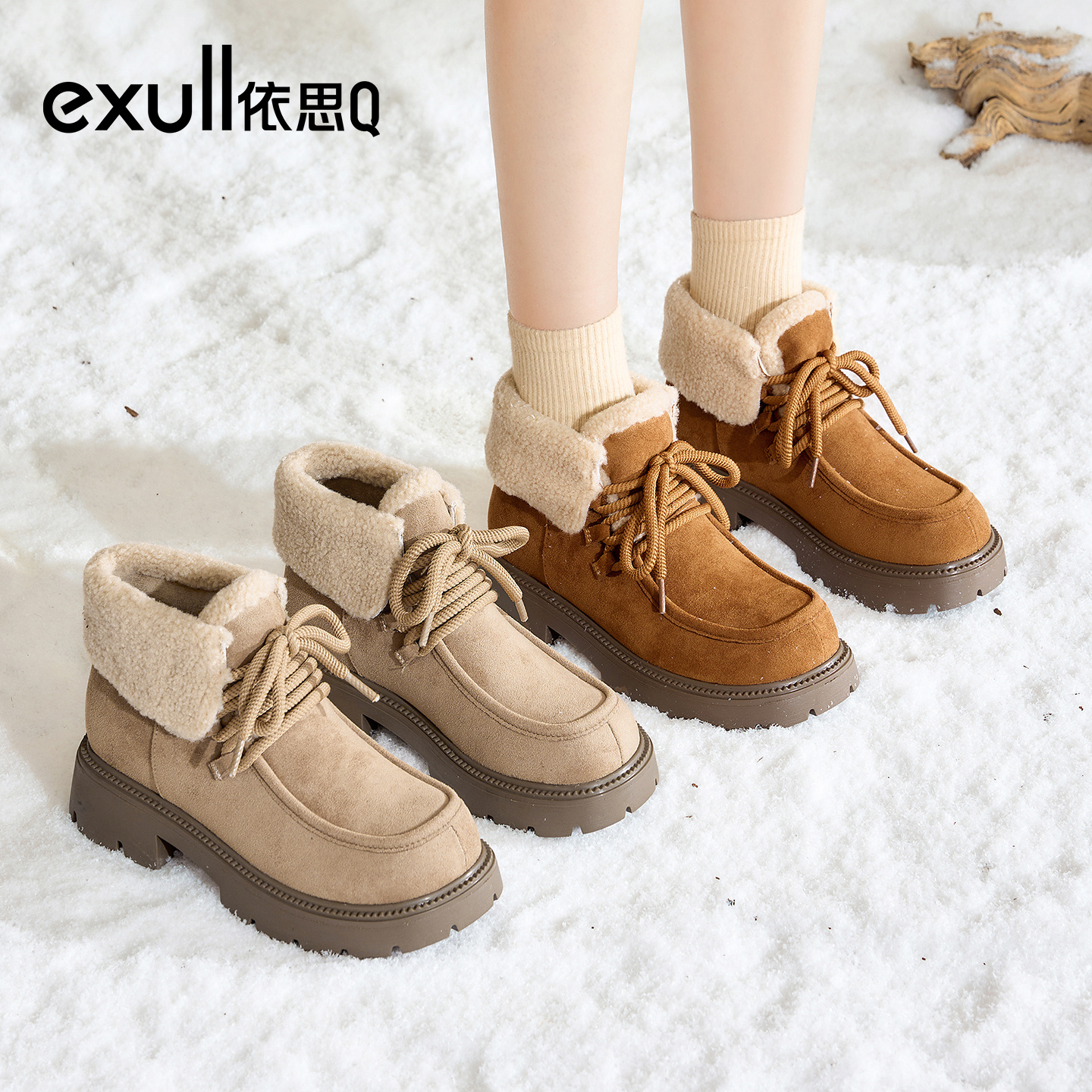 exull/依思Q2025冬新款厚底雪地靴女靴袋鼠鞋加绒保暖棉鞋女短靴