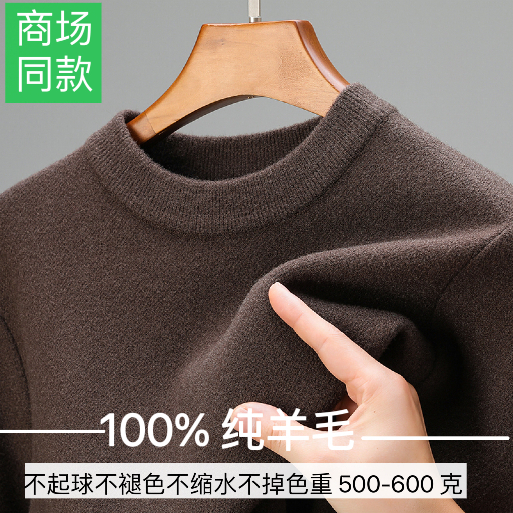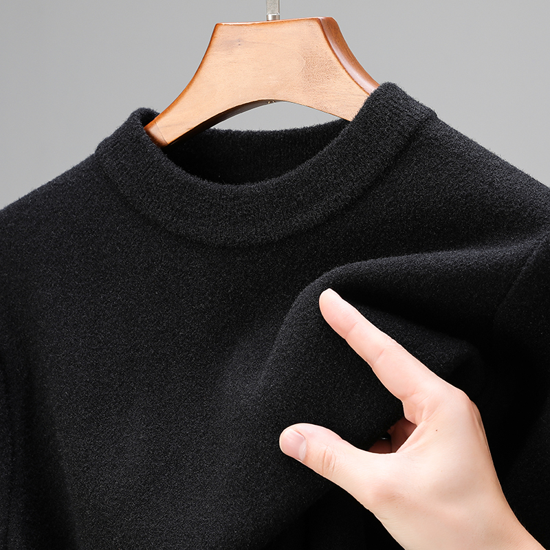 鄂尔多斯市产羊毛衫男冬季圆领套头针织加厚毛衣羊毛抗起球打底衫