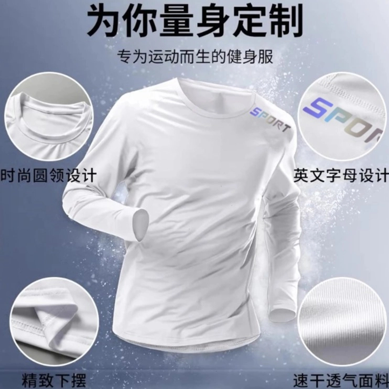 春秋季运动t恤长袖健身速干衣男打底套装篮球训练跑步衣服上衣