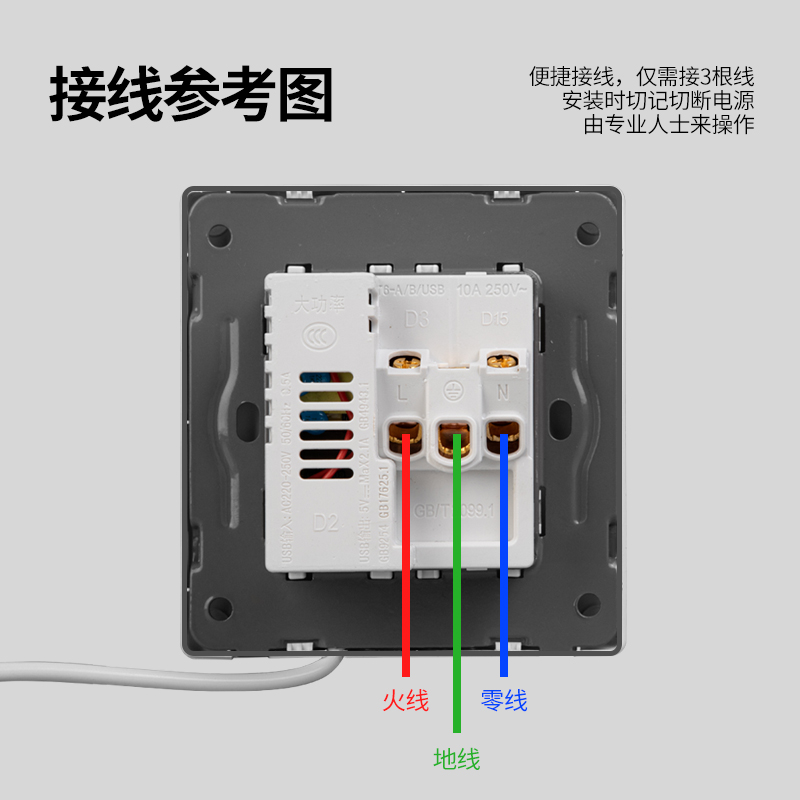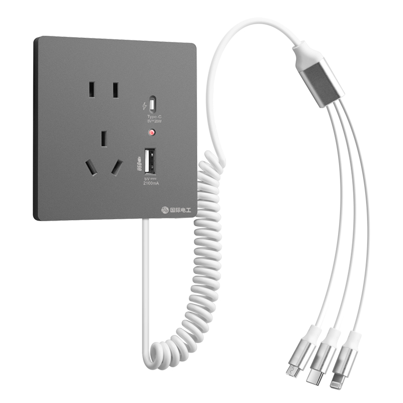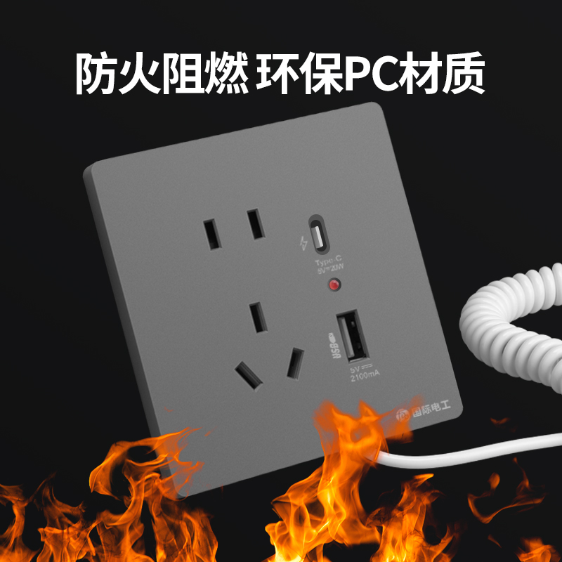 86型暗装开关插座面板5五孔usb手机充电20W快充typec家用USB插座