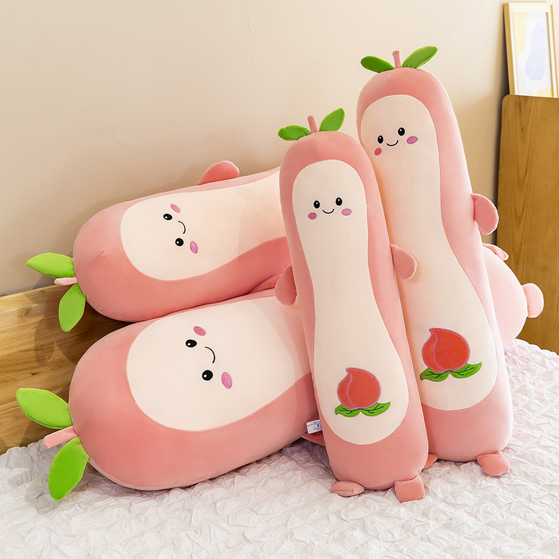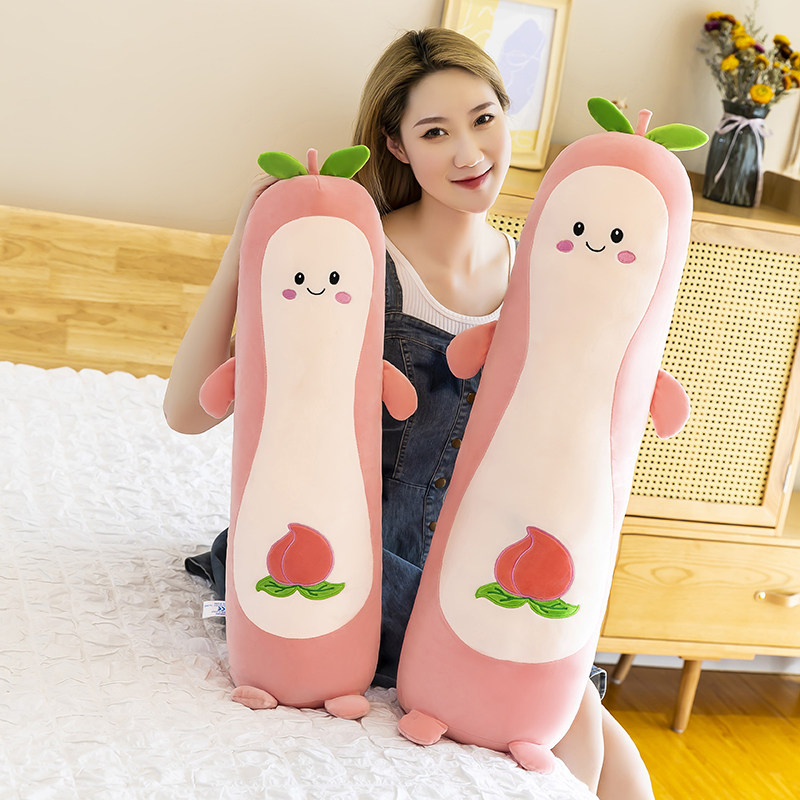 可爱创意粉色桃子抱枕毛绒玩具长条枕床上大号儿童睡觉玩偶布娃娃