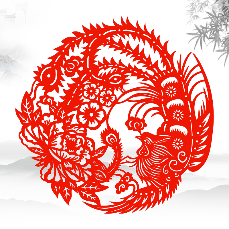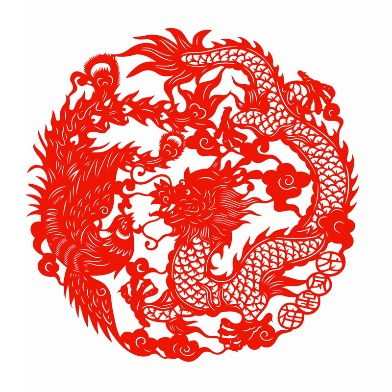 龙凤窗花龙凤呈祥静电贴纸玻璃贴画凤凰红色生肖龙贴福字新年春节