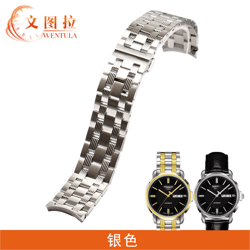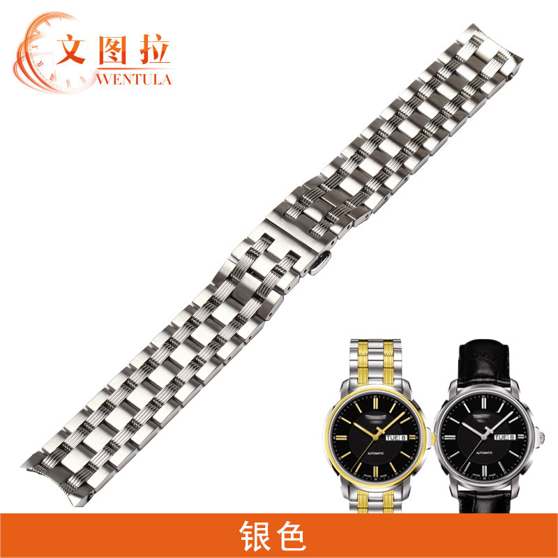 文图拉钢表带 适合天梭T065.430A海星T065钢带钢链表带手表链