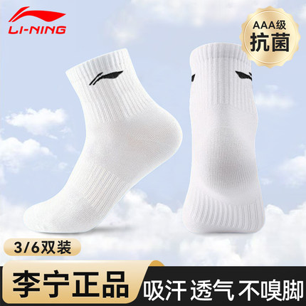 李宁袜子男士运动袜子青少年跑步夏季薄款抗菌防臭透气学生棉袜女