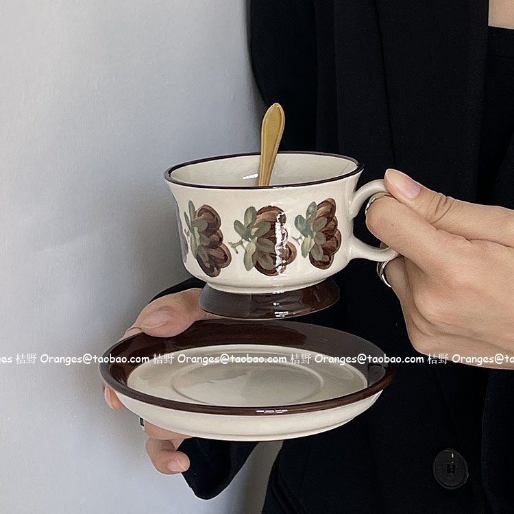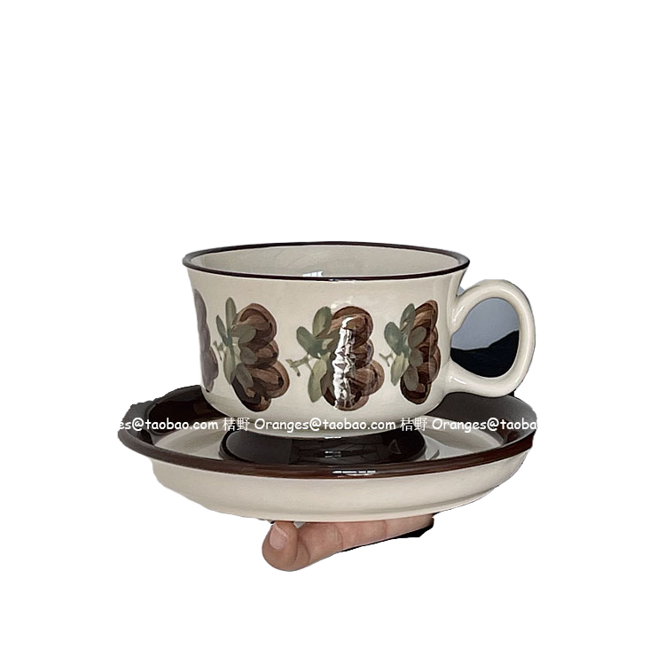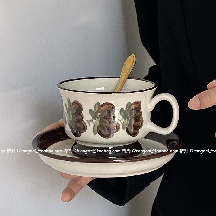 桔野Oranges送勺*芬兰中古咖啡杯碟手绘棕色铿锵玫瑰拿铁杯下午茶