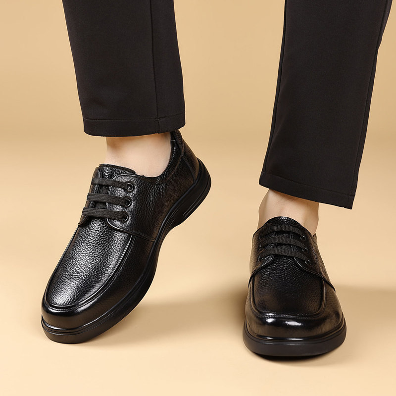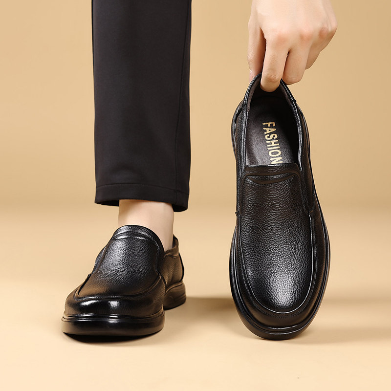 头层牛皮男鞋真牛皮新款软底软面宽头皮鞋防滑耐磨透气休闲爸爸鞋