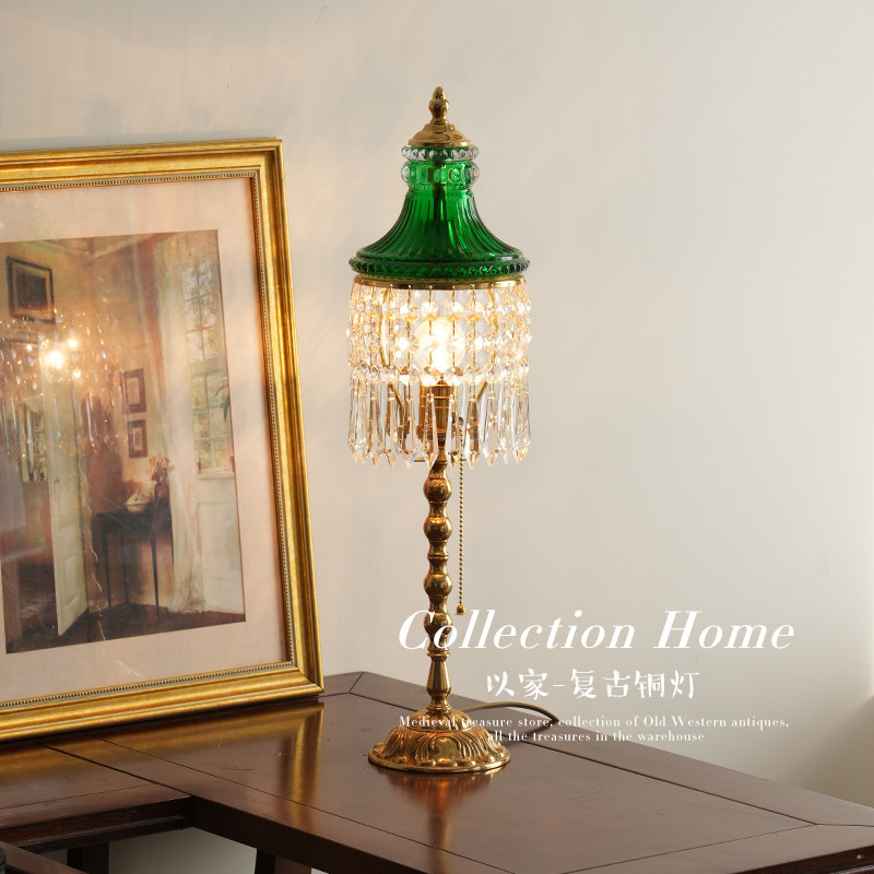 法式复古欧式水晶玻璃台灯 中古风 欧式黄铜雕花卧室客厅装饰灯具