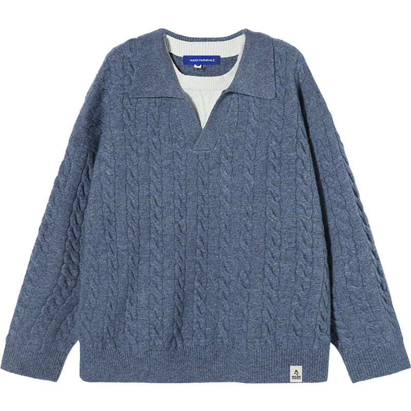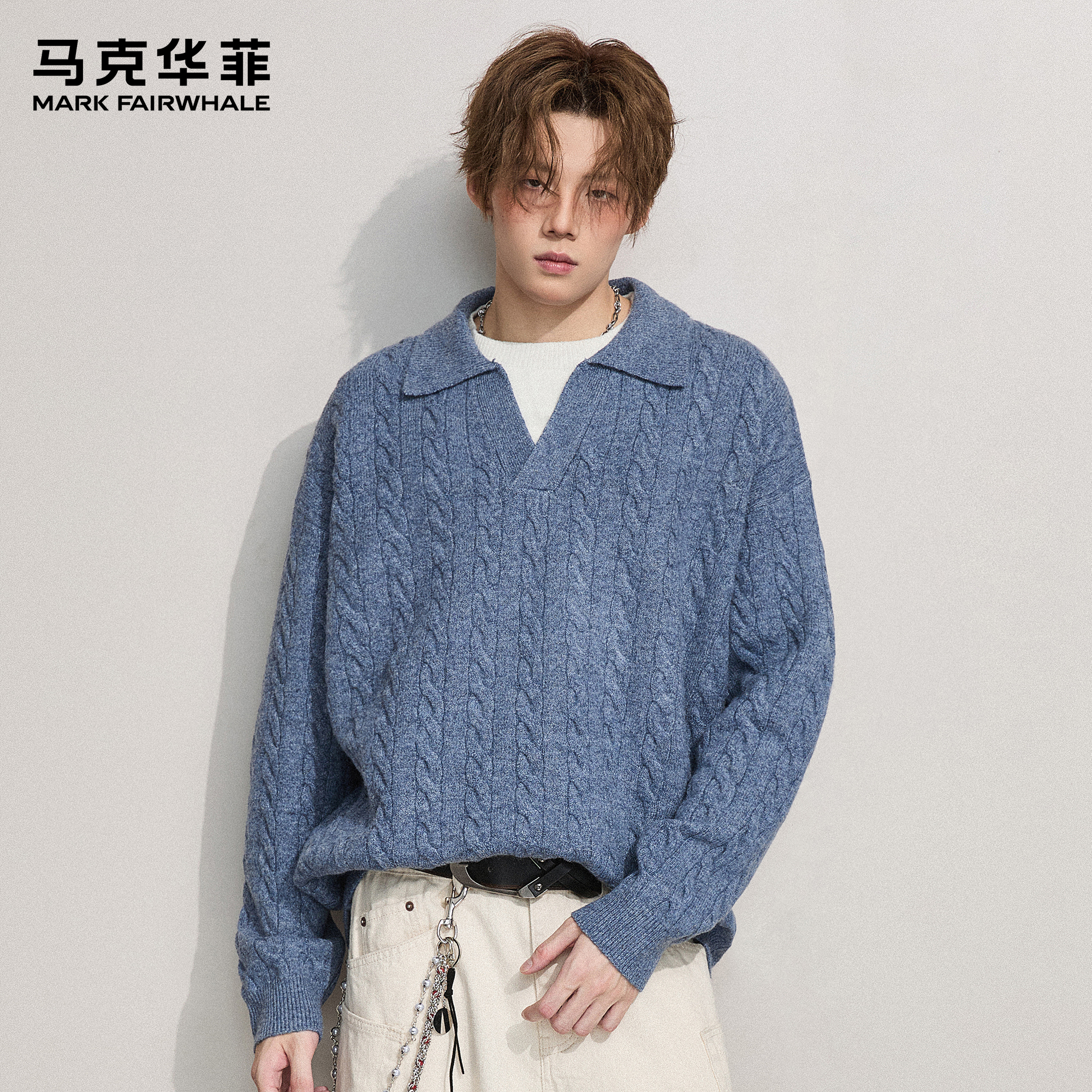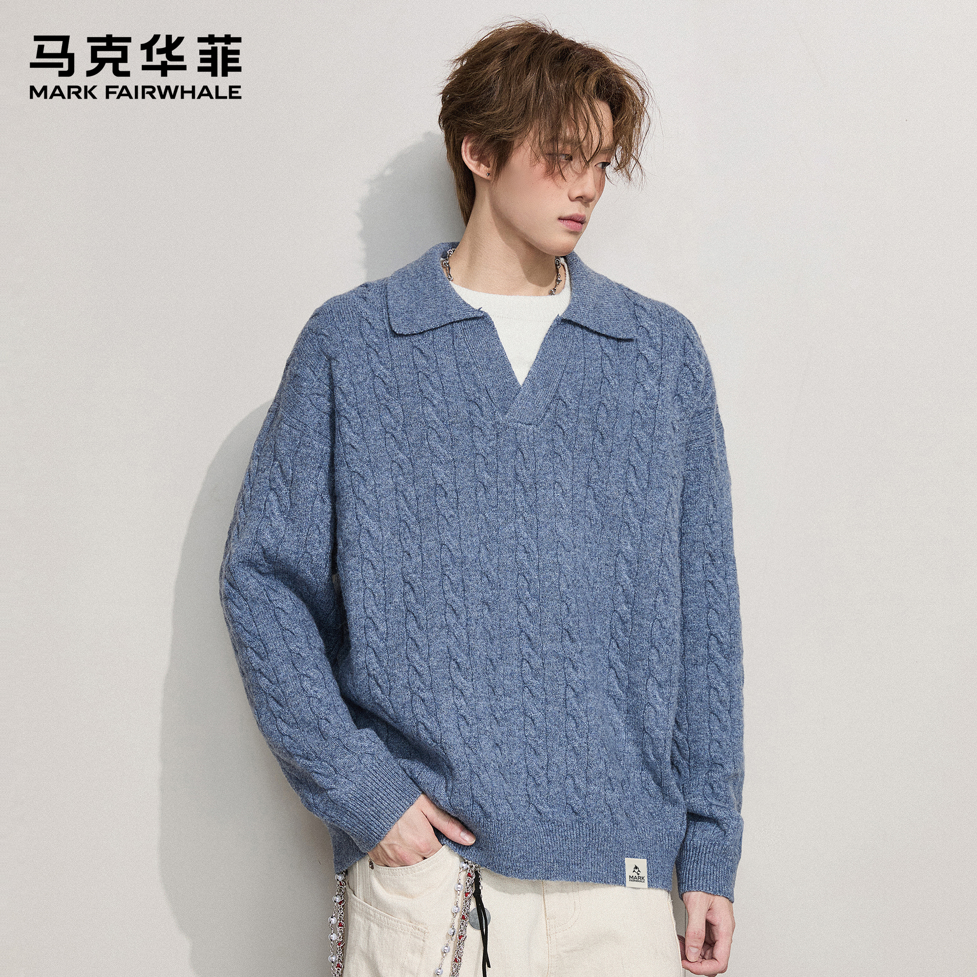马克华菲针织衫男秋冬新款假两件时尚高级感麻花重磅保暖宽松毛衣