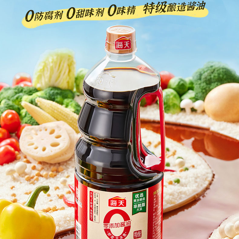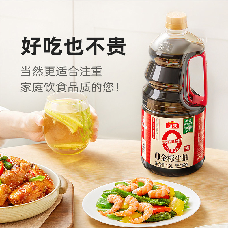 零添加 海天0金标生抽1.9L黄豆酿造酱油家用提鲜炒菜凉拌调味料