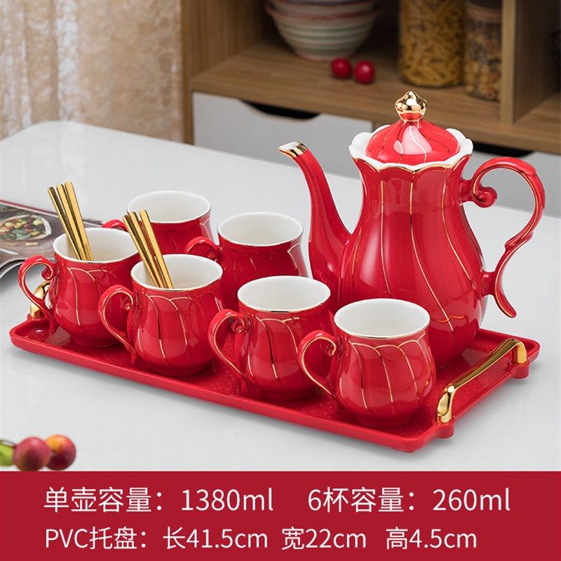 结婚水杯b套装高档客厅杯具喜庆茶壶茶具茶杯家用杯子礼盒套装