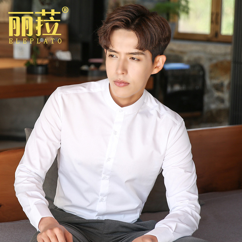 白衬衫男长袖2021年秋职业圆领立领商务西装正装免烫工装男士衬衣