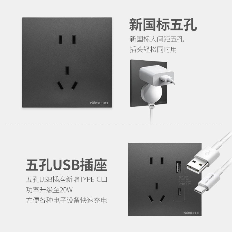 雷士电工Q18极地灰5.2mm超薄16A