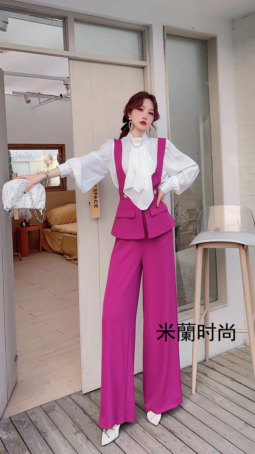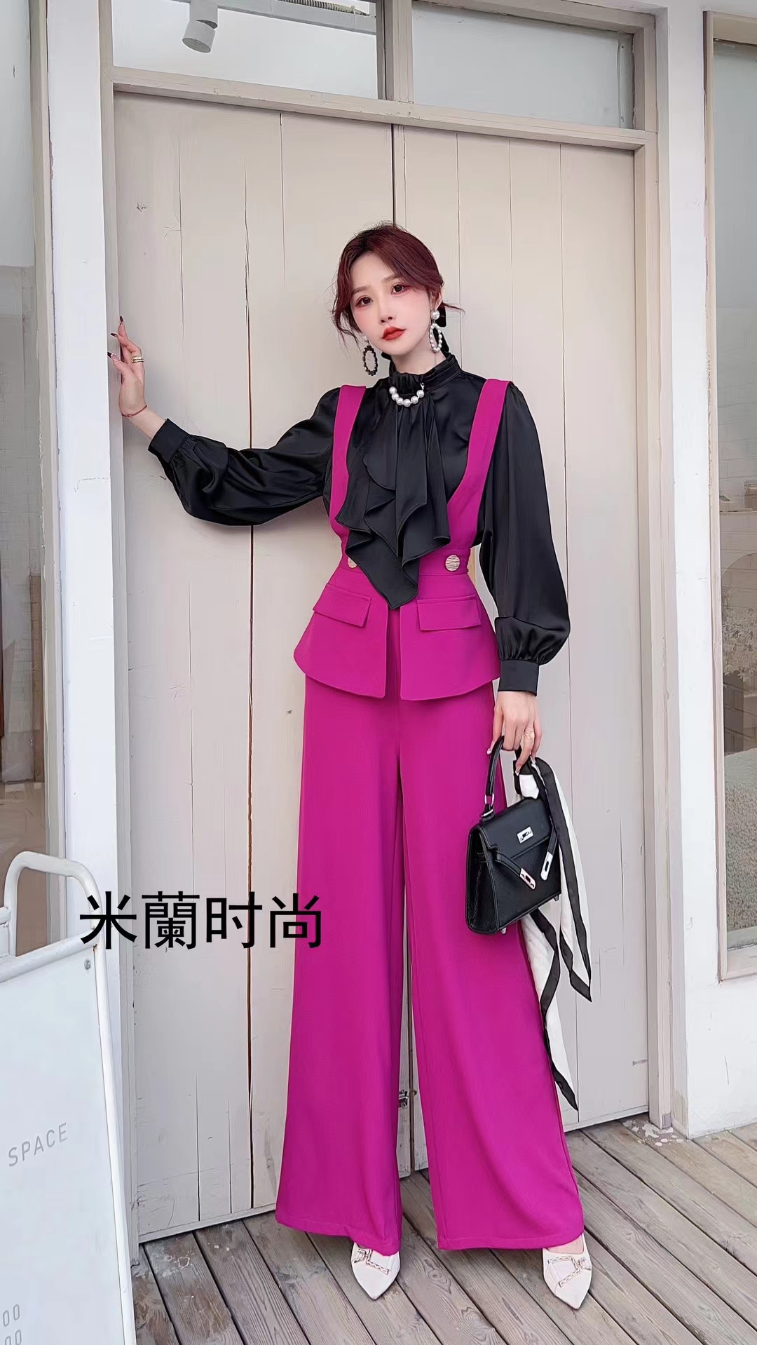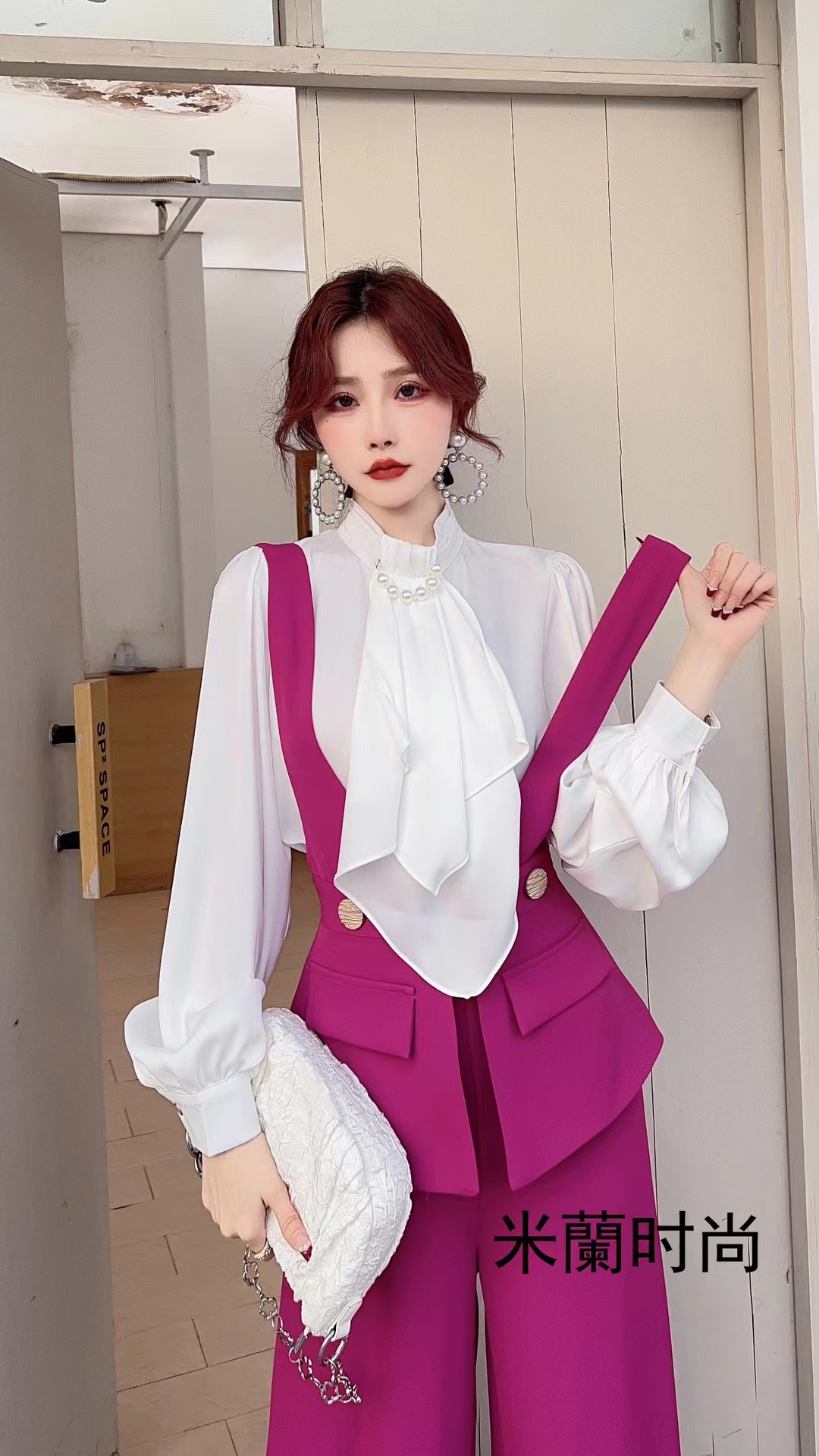 春季套装2025新款女洋气减龄显瘦遮肉连体长裤背带裤子衬衫两件套