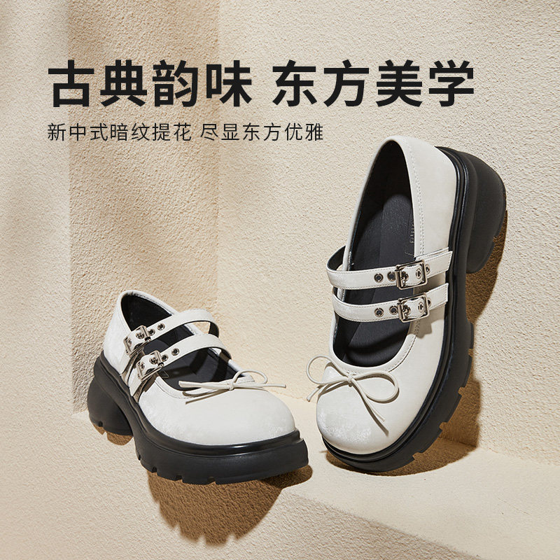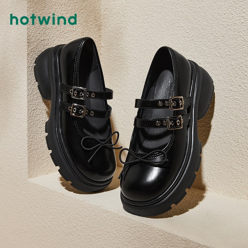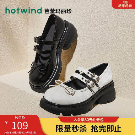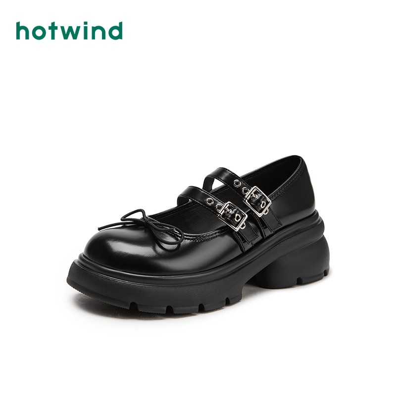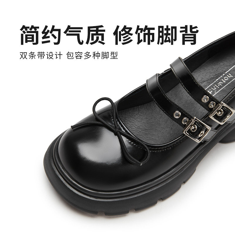 热风秋季新款女士时尚圆头一字扣带休闲鞋配裙子jk玛丽珍鞋