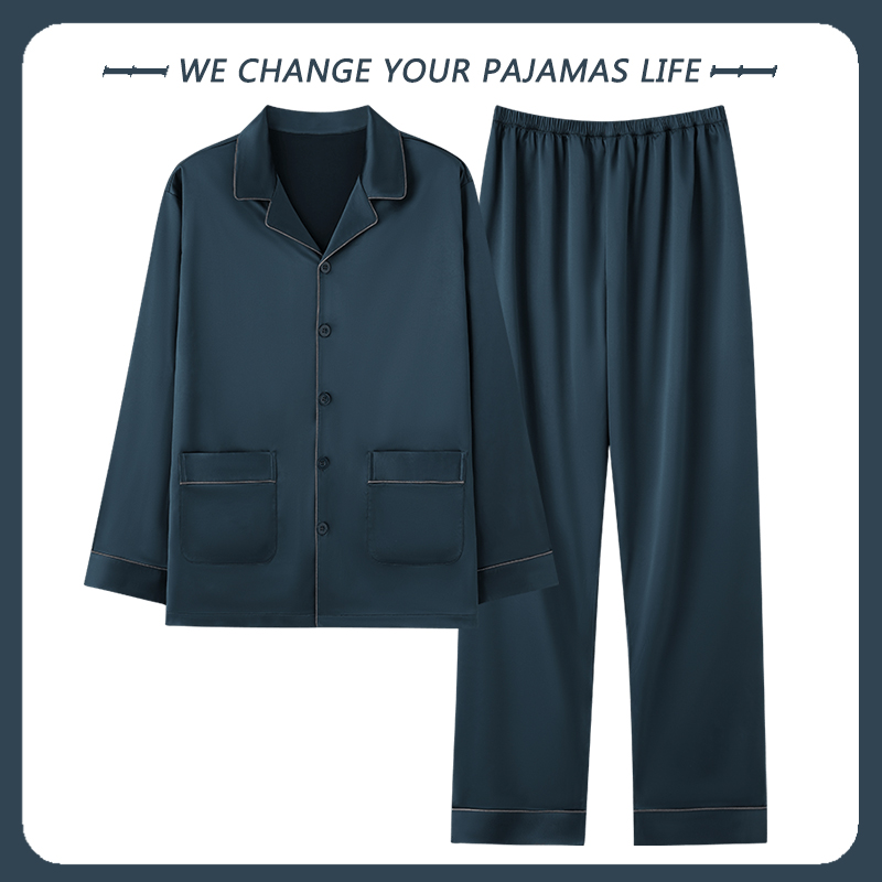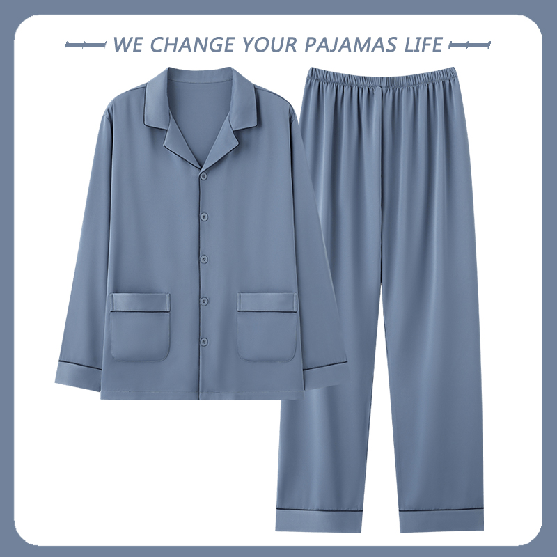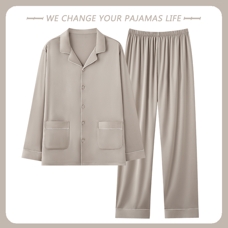 北极绒睡衣男士春秋季长袖丝绸冰丝开衫家居服薄款仿真丝绸缎套装