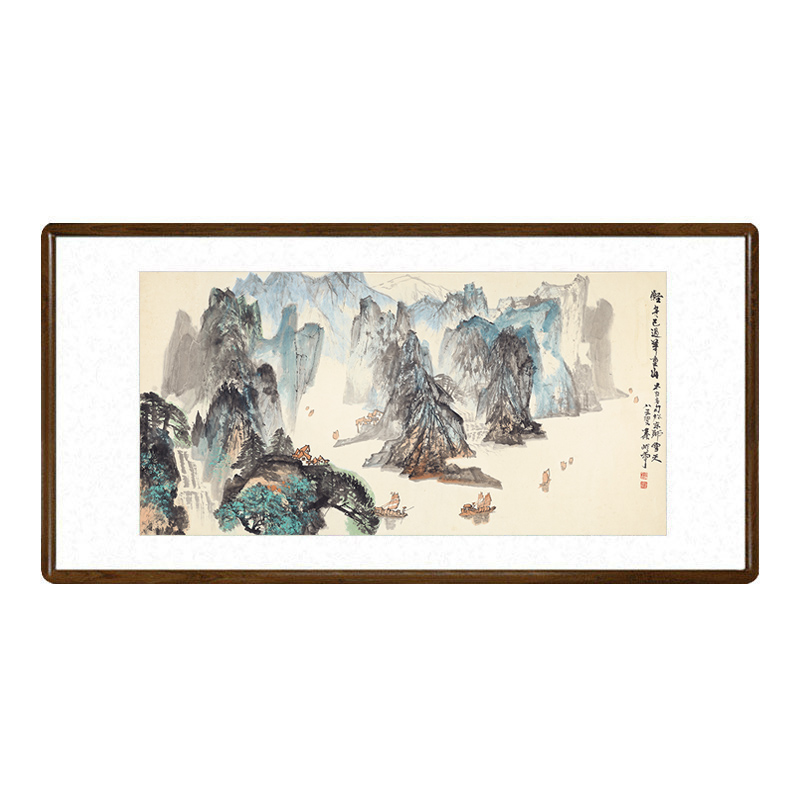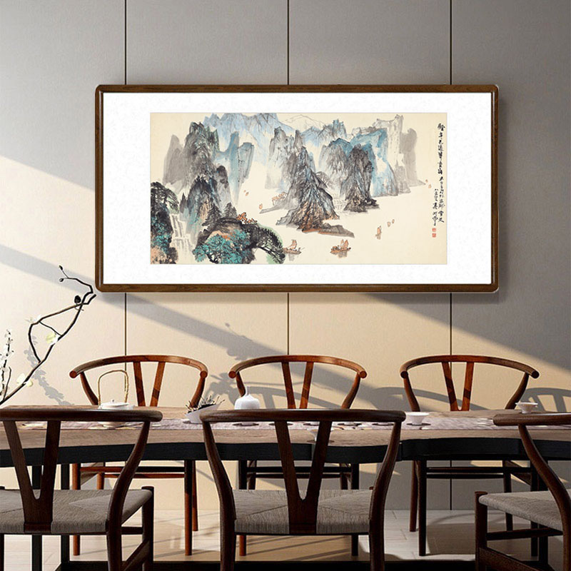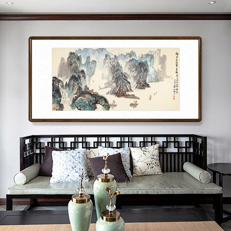 秦岭云轻舟已过万重山国画山水画客厅沙发背景墙装饰画办公室字画