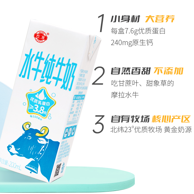 石埠纯水牛奶广西水牛200ml*12整箱儿童成长营养早餐奶3.8克蛋白