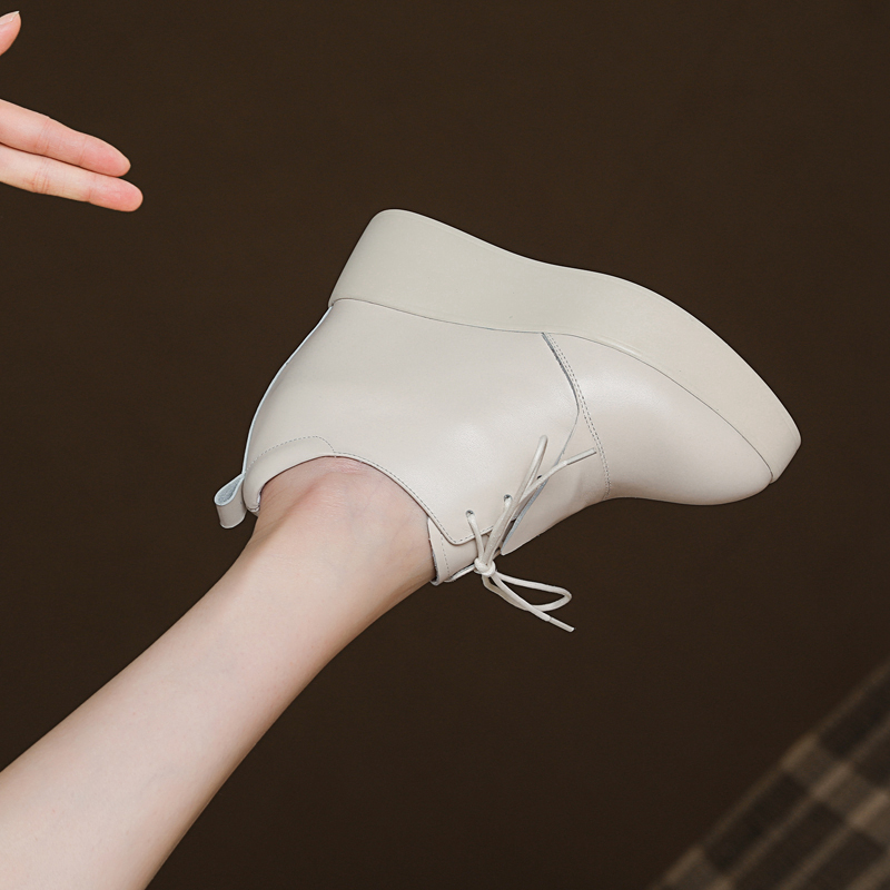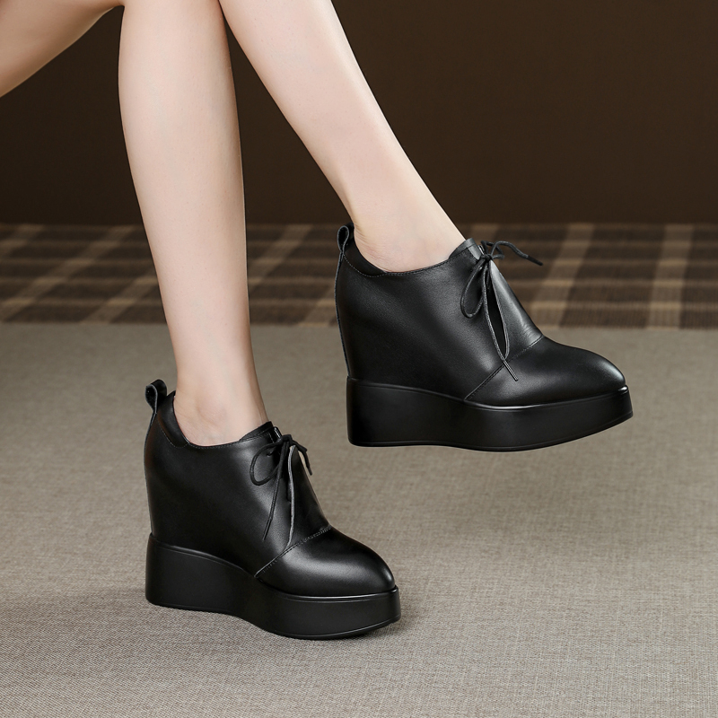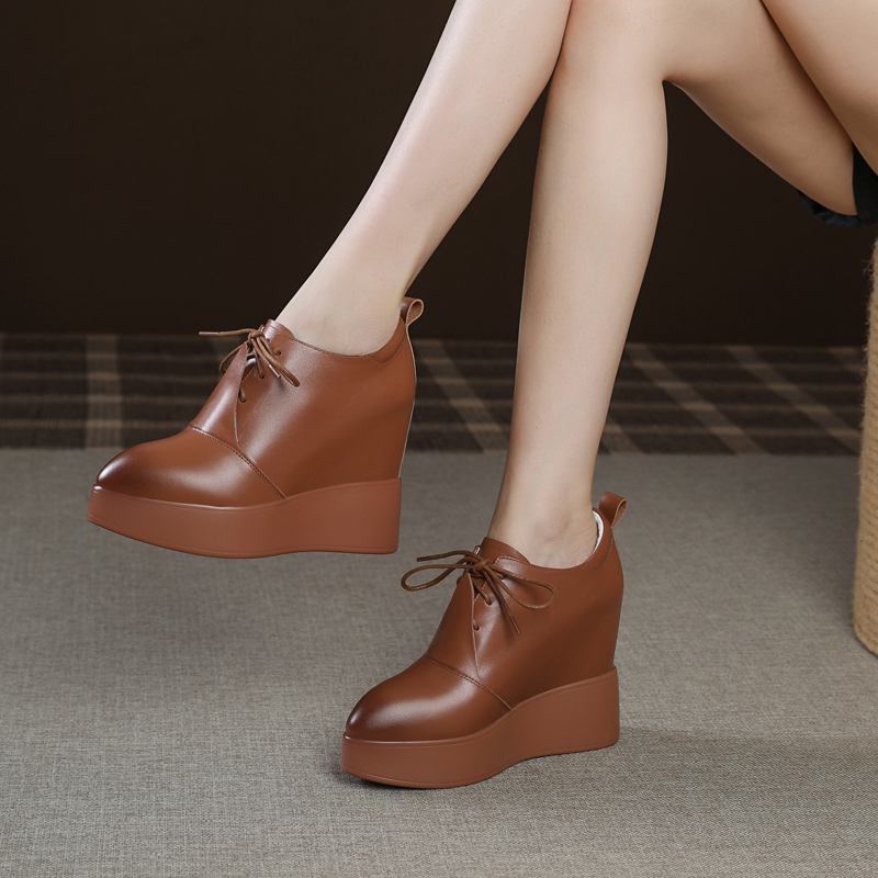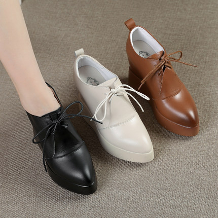 12cm真皮内增高女鞋春季英伦风厚底坡跟单鞋显瘦软牛皮尖头小皮鞋