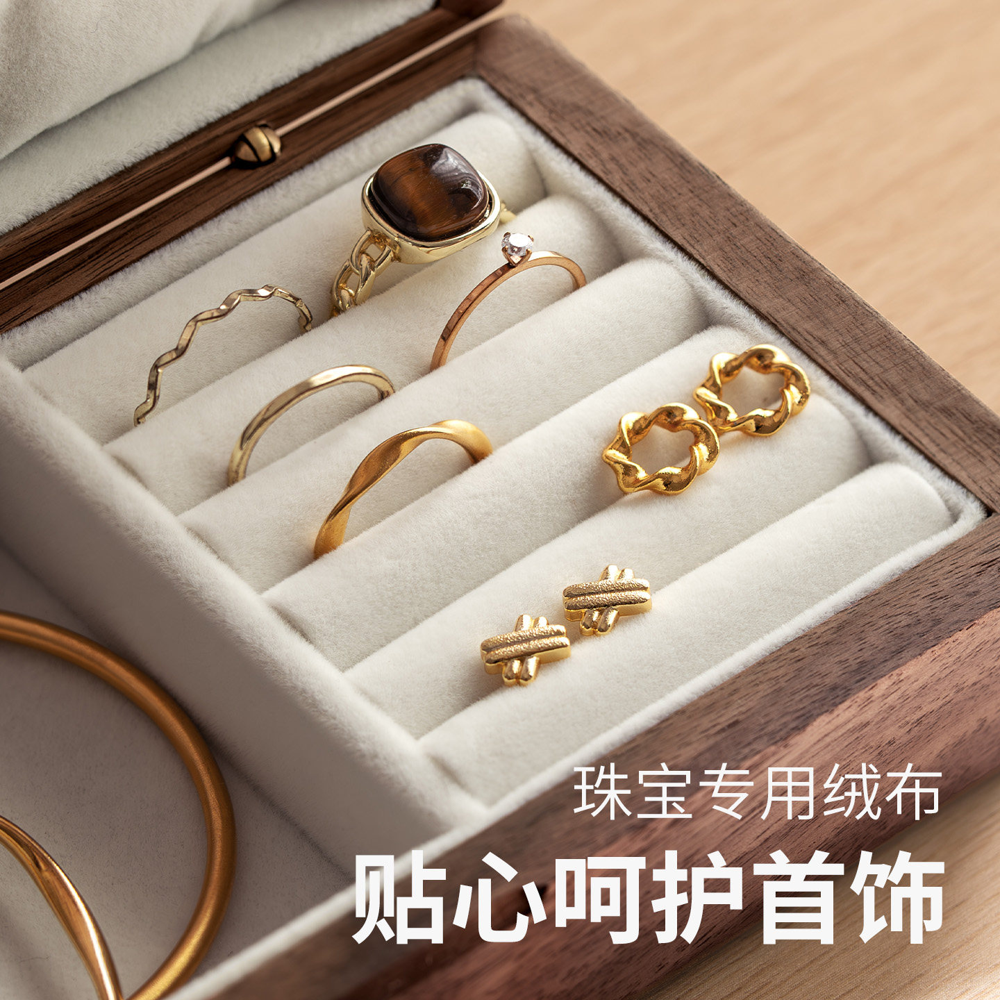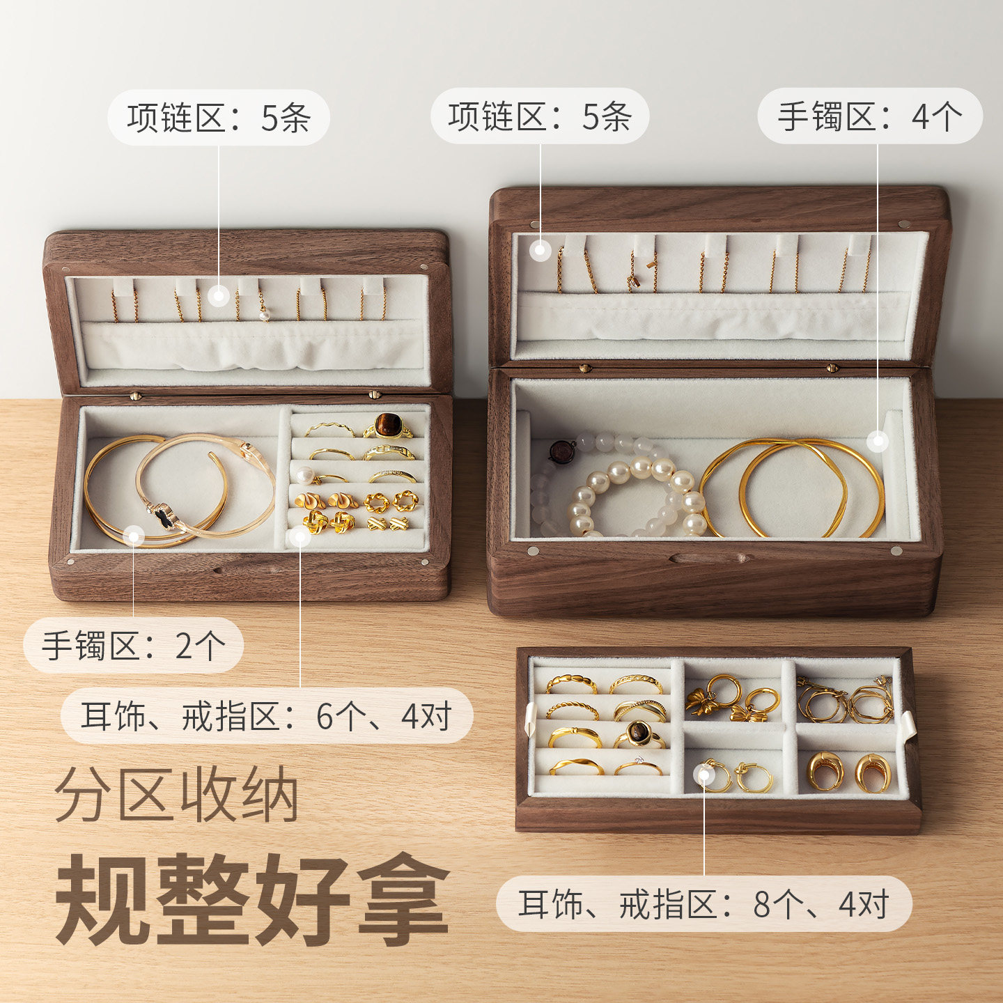 懒角落木质首饰盒分区合理收纳