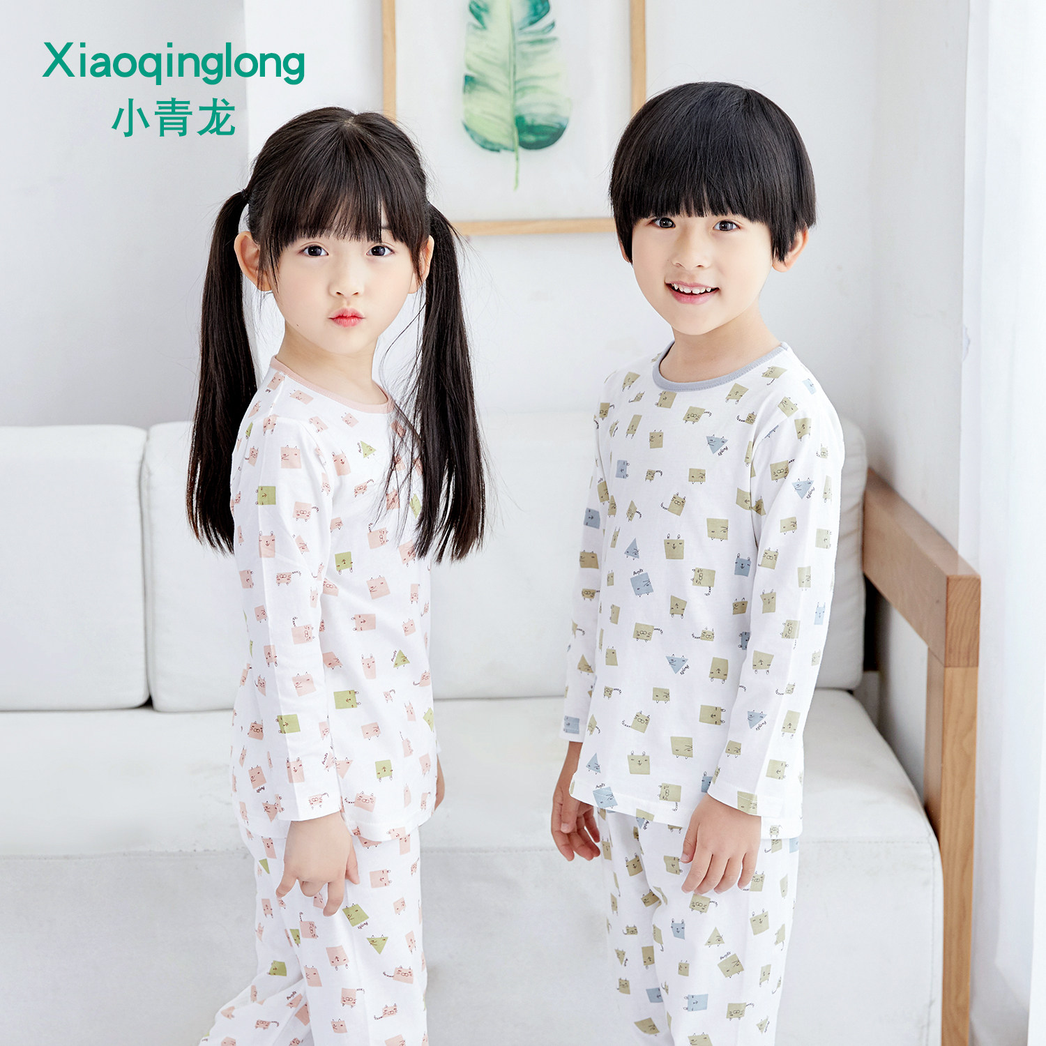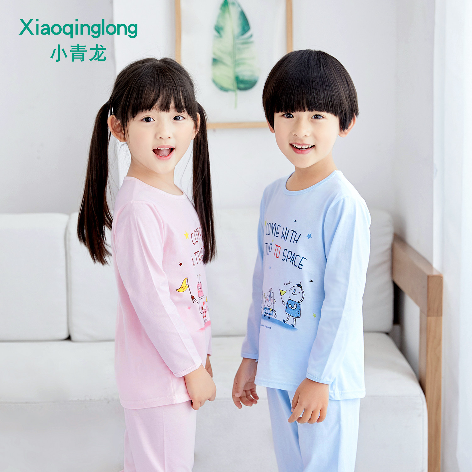 小青龙儿童睡衣春夏季男童女童纯棉薄款空调服套装宝宝小孩中大童