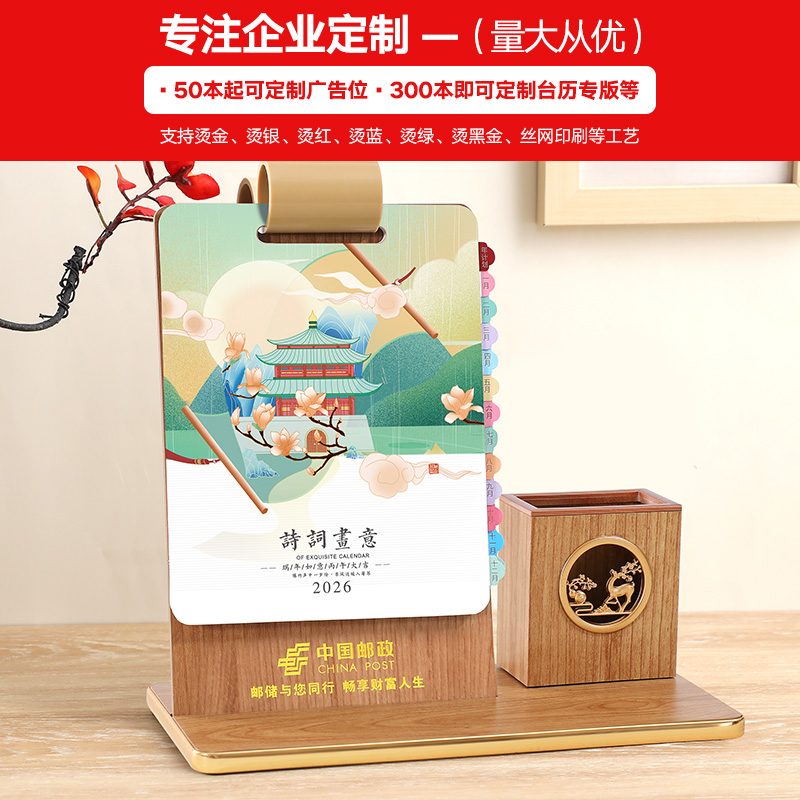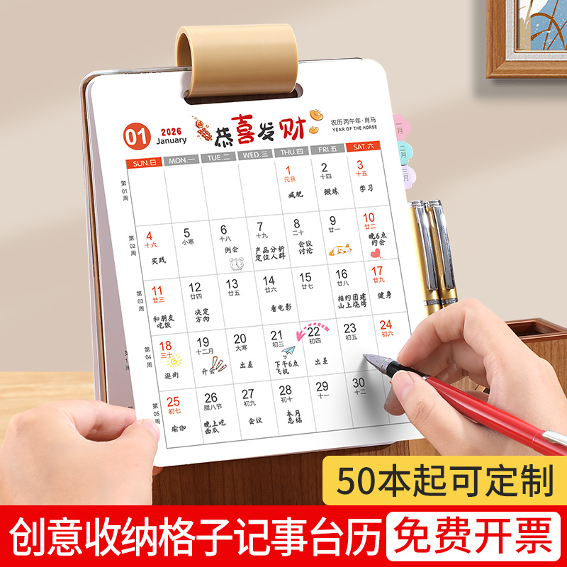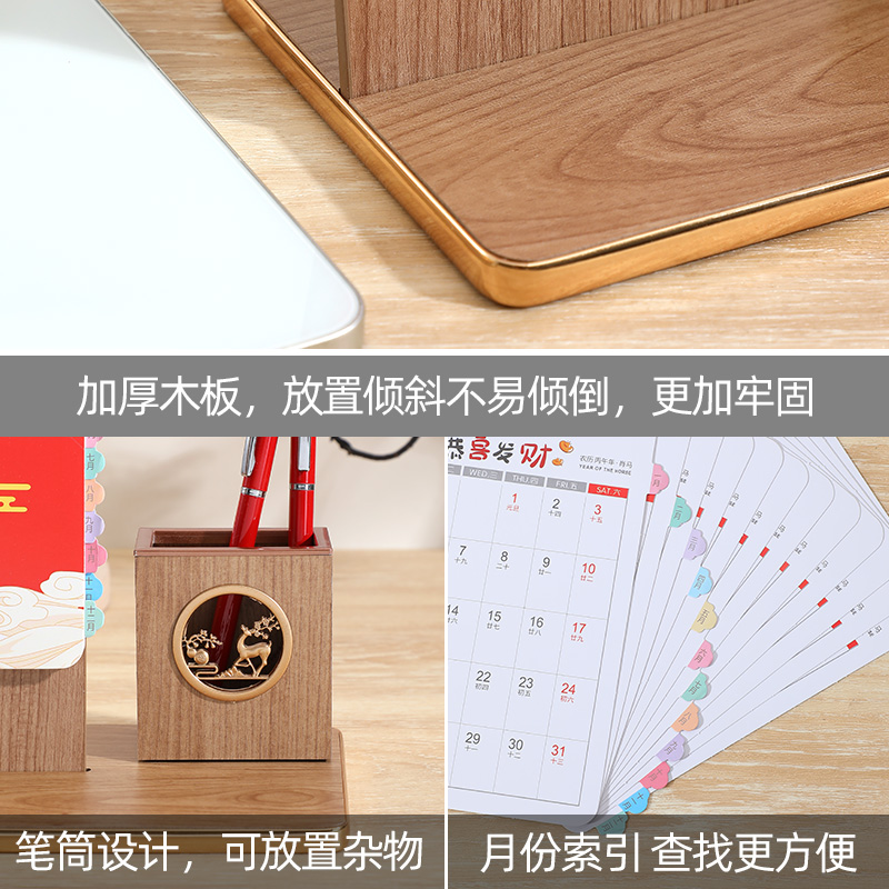 台历2026年新款马年创意礼盒多功能木质笔筒索引商务风桌面摆件日历大格子记事打卡计划本广告位定制可印logo