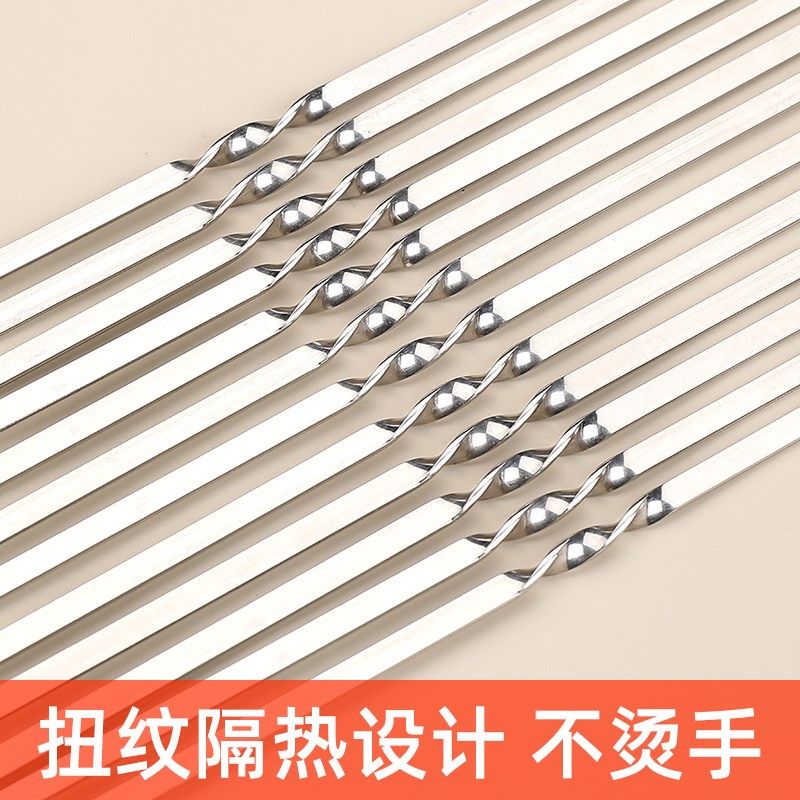 新款羊肉串烧烤铁签子不锈v钢扁签烤肉用具签字烤串用品纤子商用
