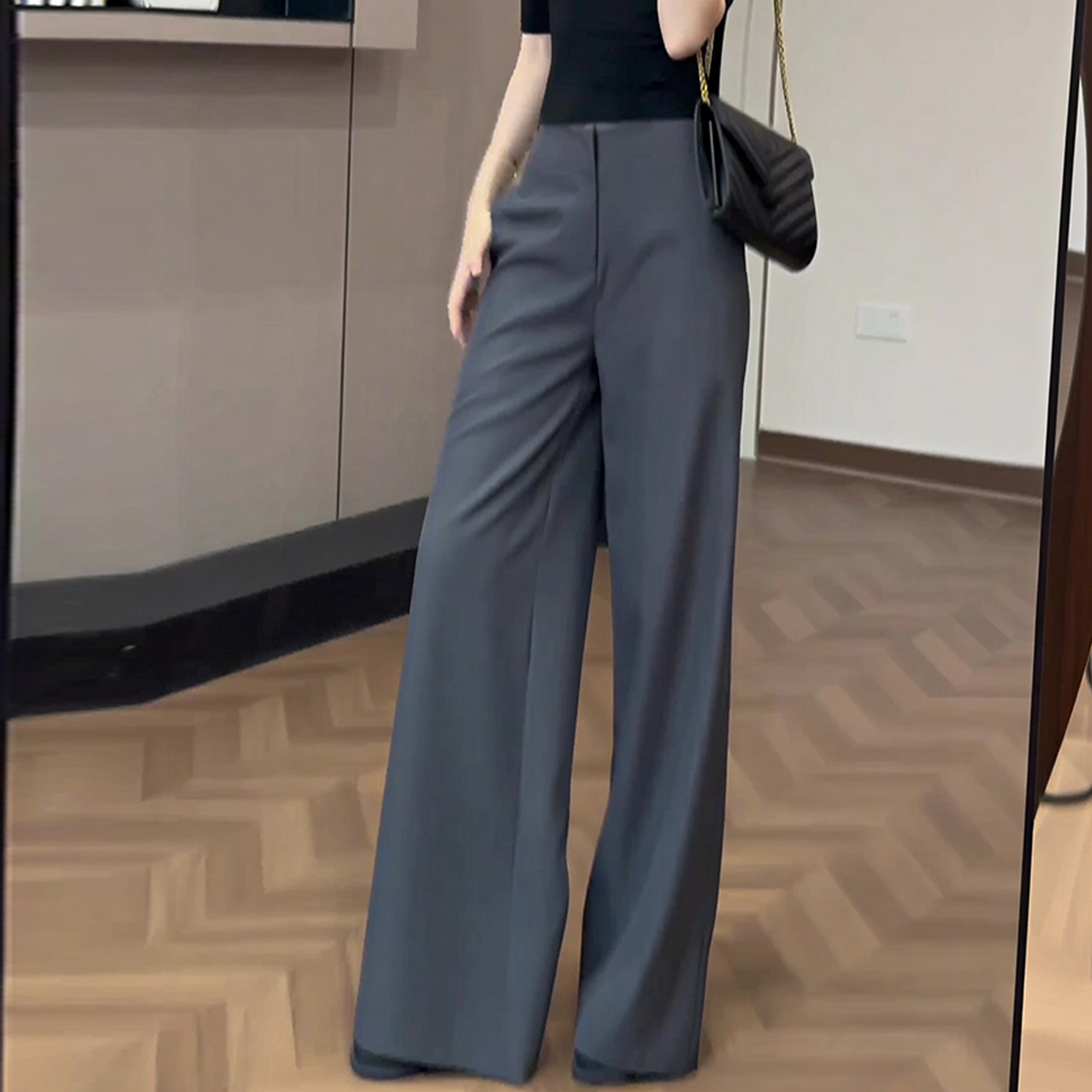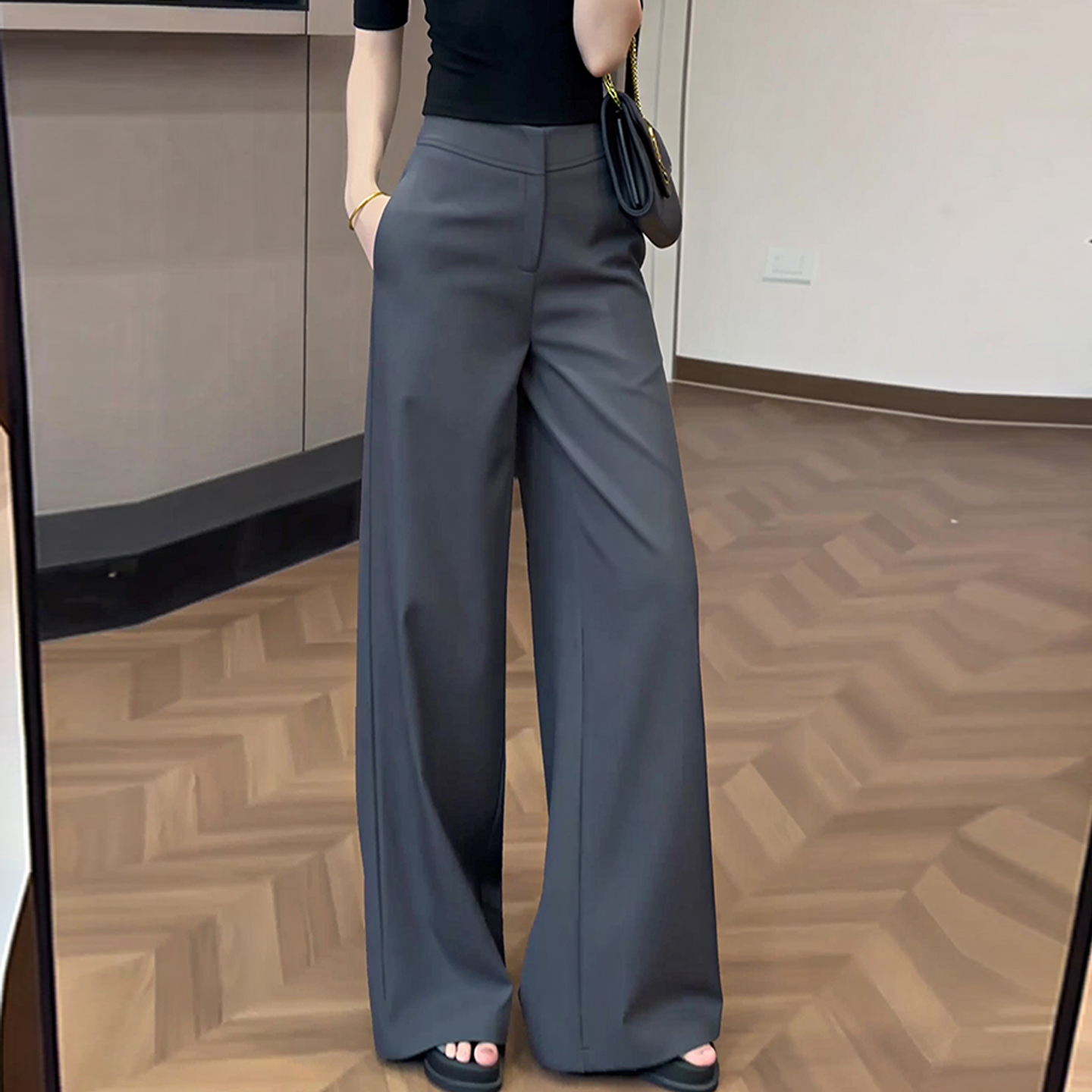 2025秋冬季新款深灰色气质休闲垂感西装裤女百搭宽松阔腿拖地长裤
