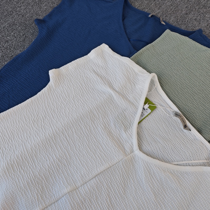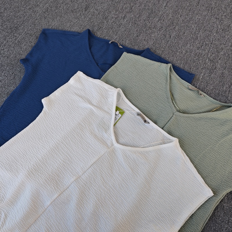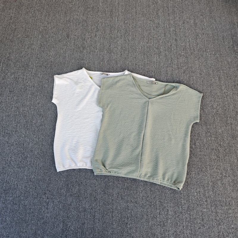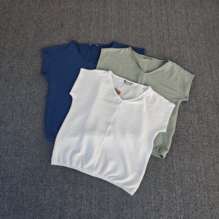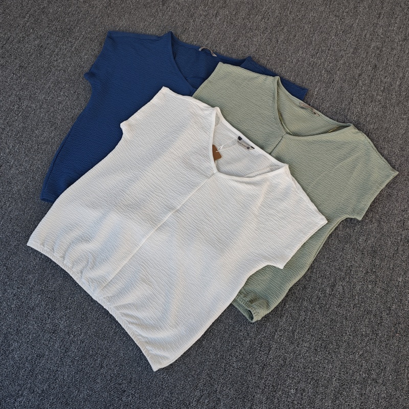 欧美单春夏泡泡纱V领套头小飞袖T恤衫女宽松显瘦百搭短袖打底衫