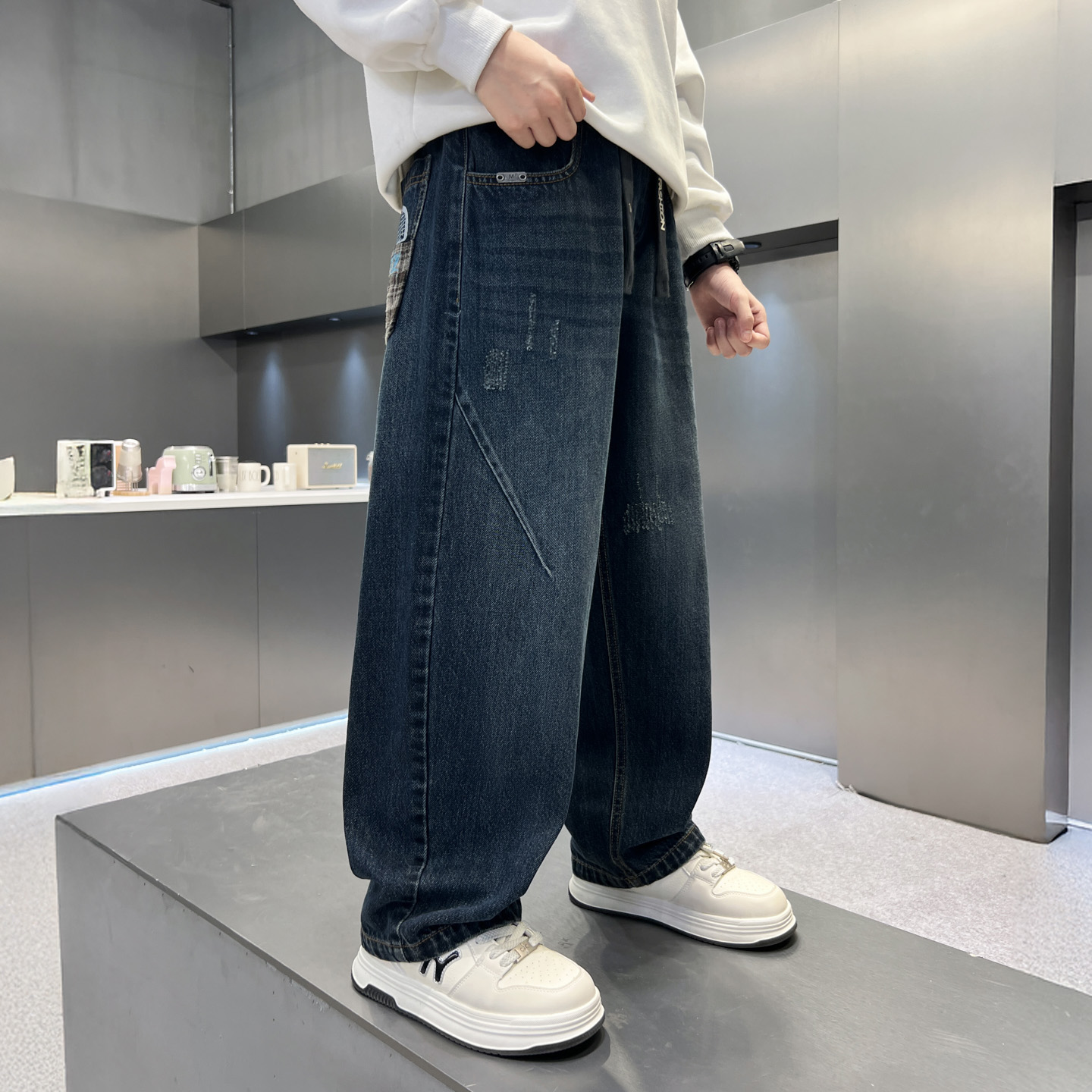男童一体绒牛仔裤秋冬款2025新款酷帅儿童加绒裤子中大童冬季长裤