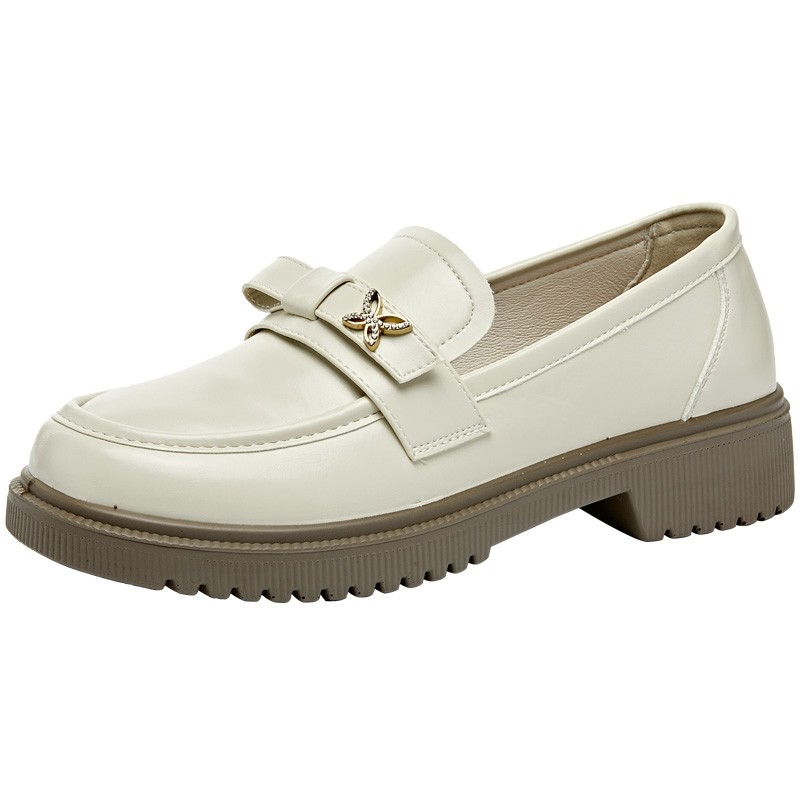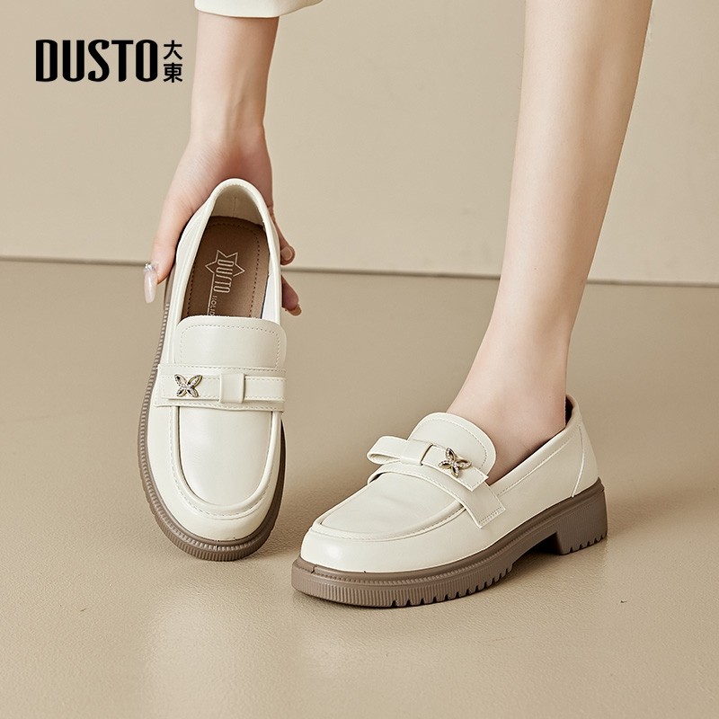 大东黑色圆头小皮鞋女2025新款秋冬英伦风厚底乐福鞋百搭软底单鞋