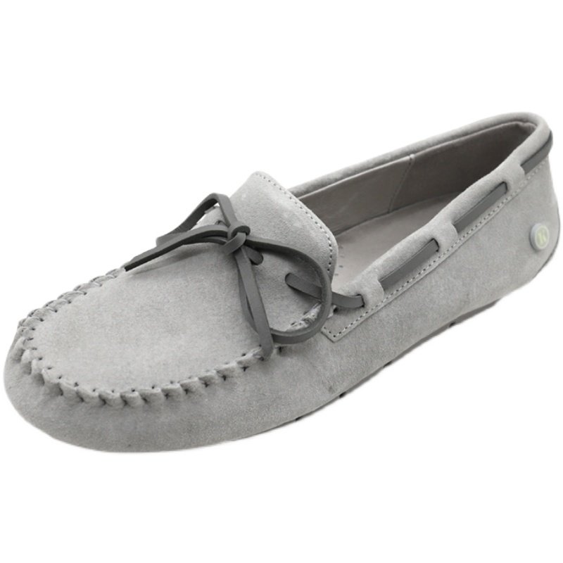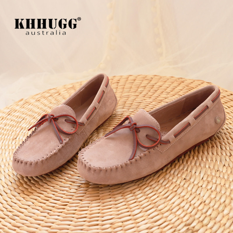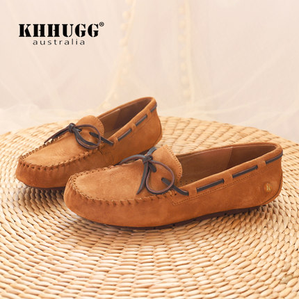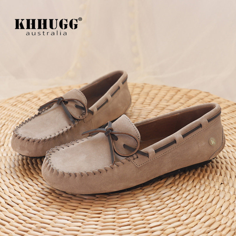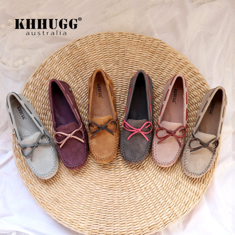 KHHUGG真皮豆豆鞋女2026年春秋新款平底单鞋浅口软底一脚蹬乐福鞋