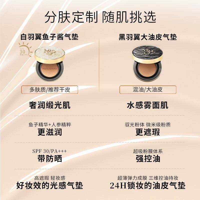 毛戈平黑白羽翼星耀鱼子酱气垫干皮油皮粉底液遮瑕持妆服帖正品