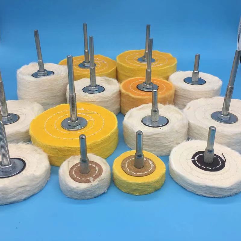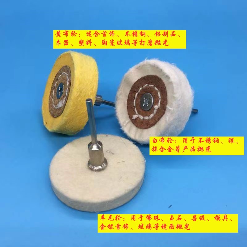带杆抛光布轮抛光机手电钻加厚绒布轮大白色纯棉镜面抛光轮6mm柄